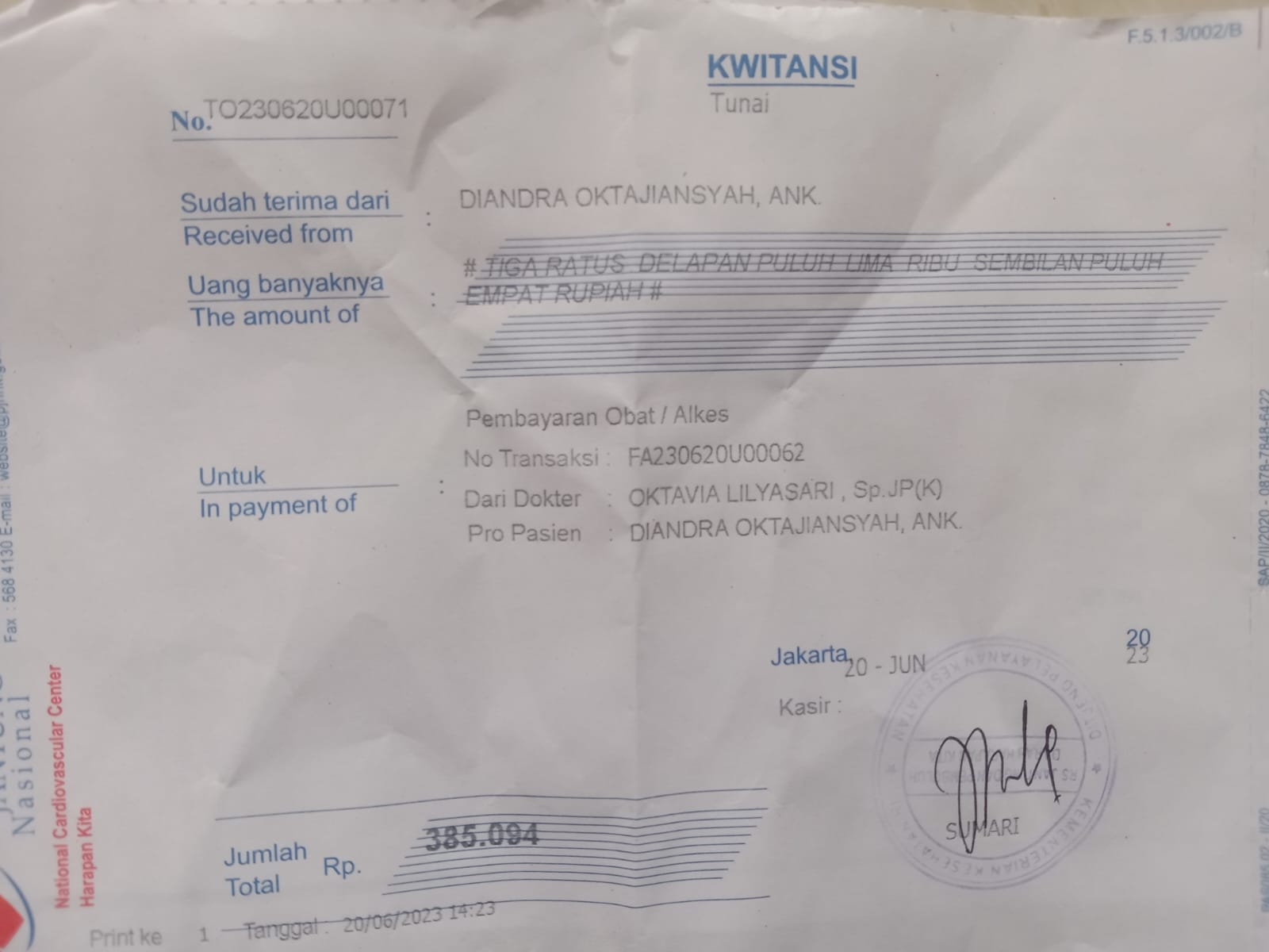 Oya, bantuan dana dari TemanBaik sudah digunakan dengan baik untuk pembelian obat untuk anakku.