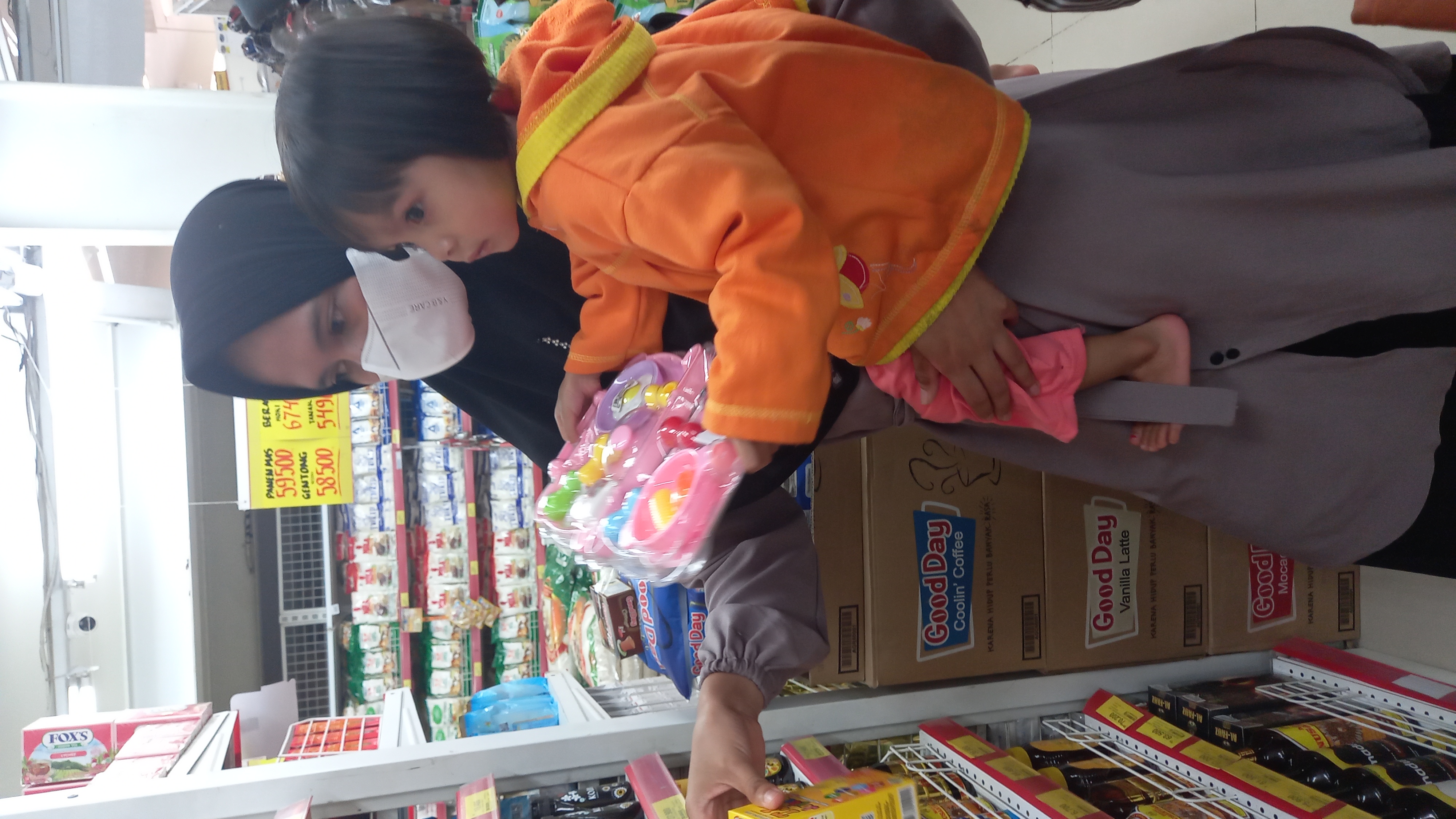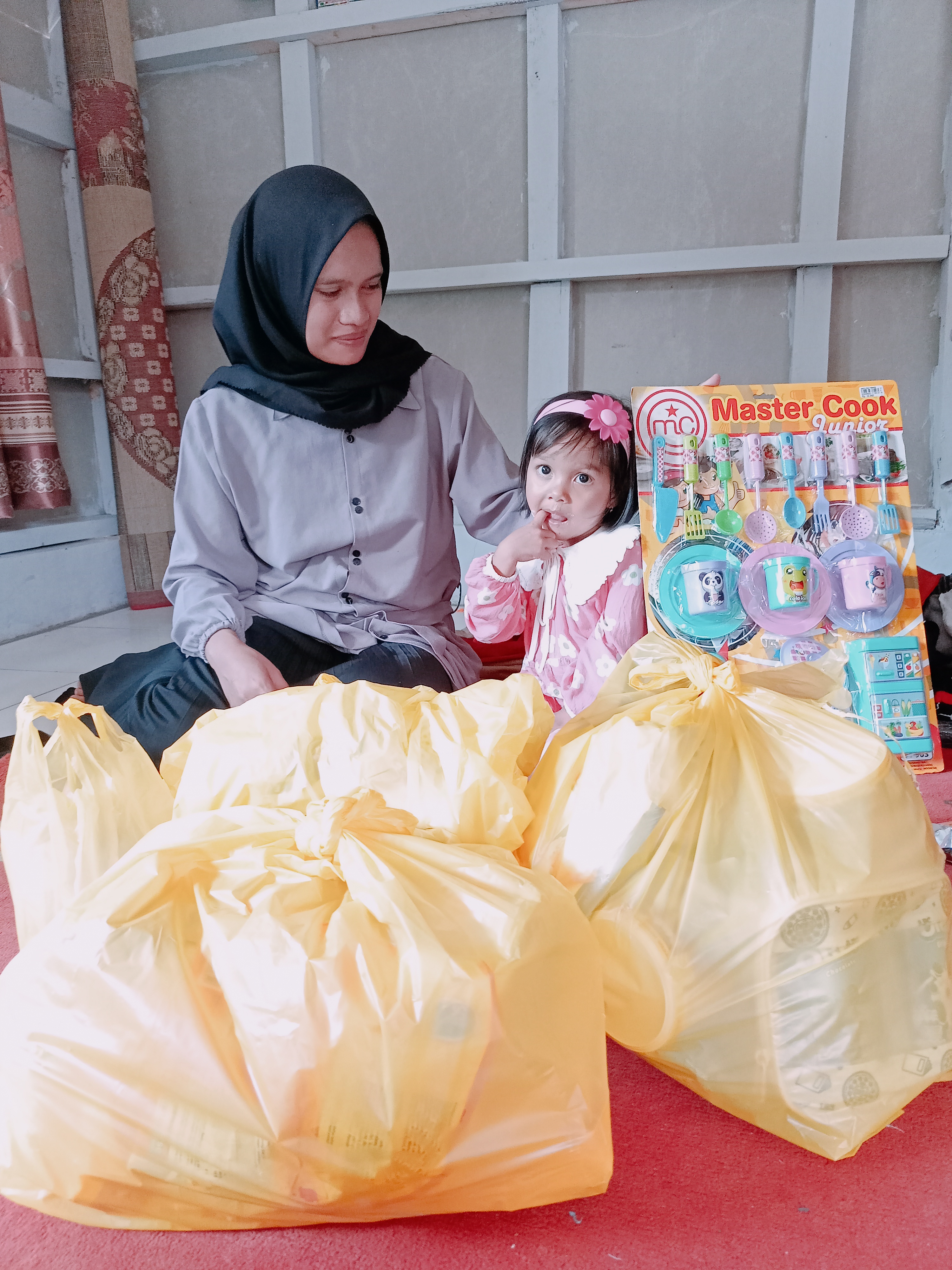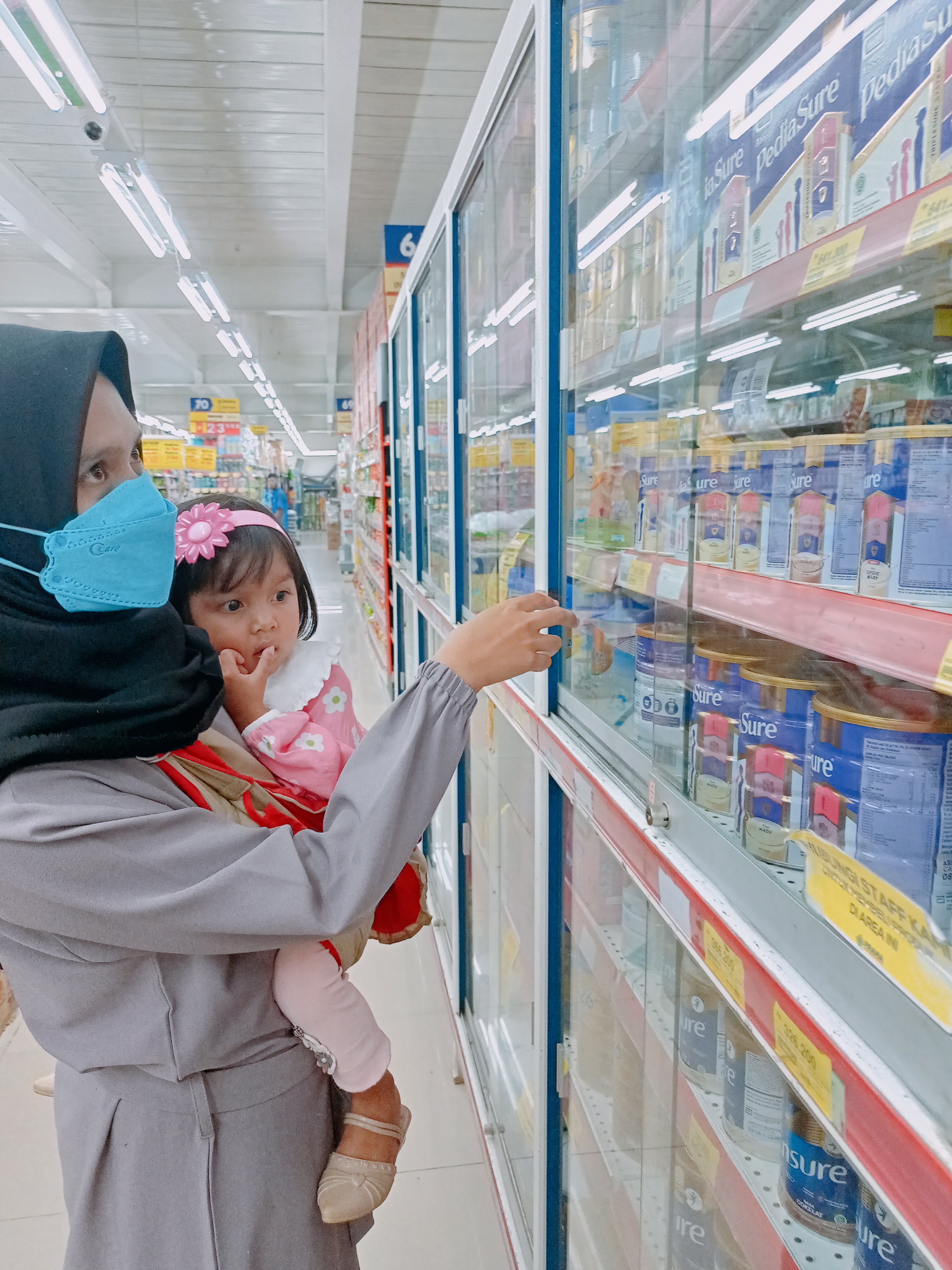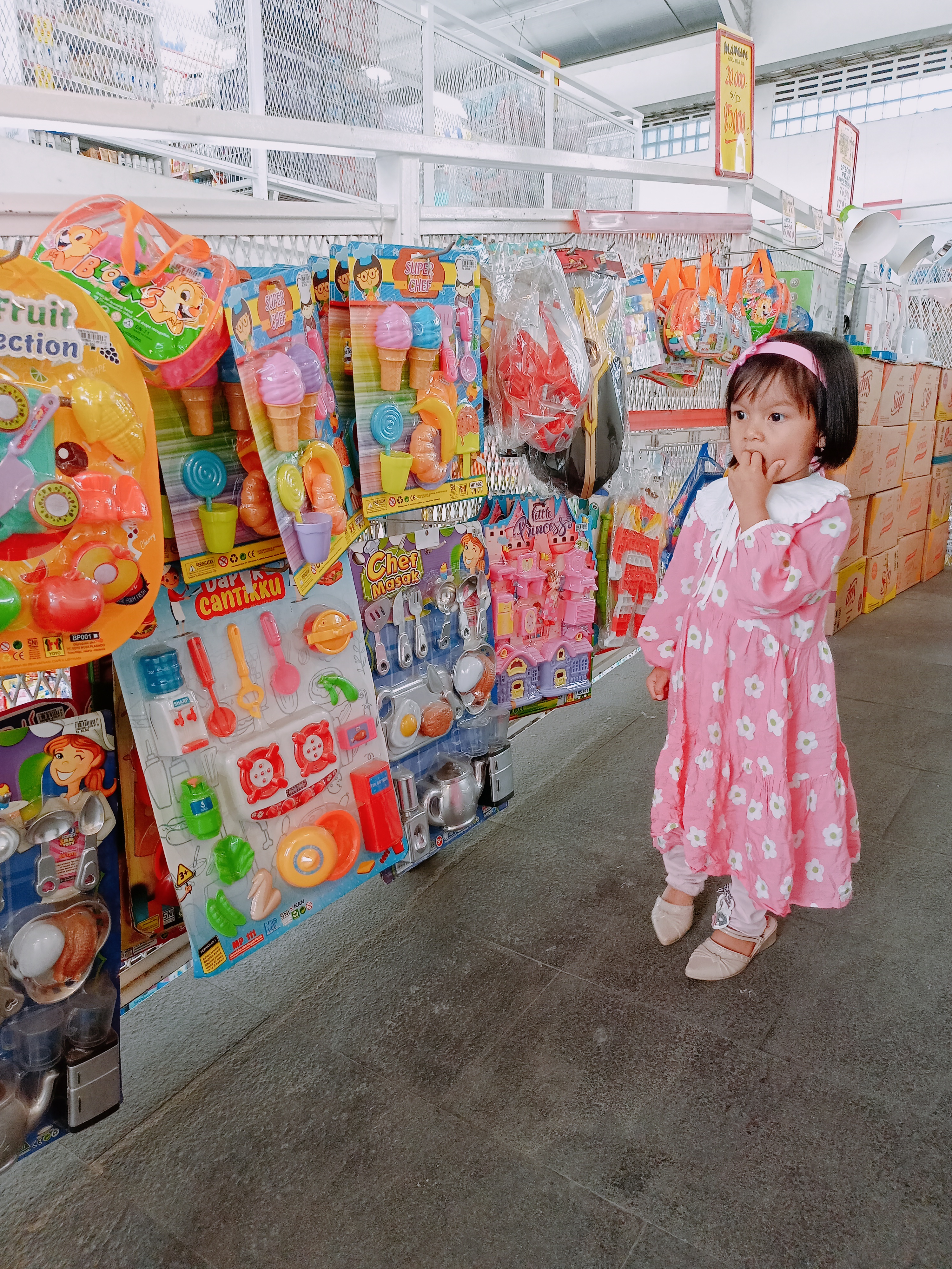 Setelah selesai kontrol kami mengajak rafania dan ibunya untuk membeli kebutuhan untuk bulan Juli seperti, sembako, buah-buahan, vitamin, kebutuhan mingguan rafania seperti selang kateter, perban dan lain-lain. terlihat ditengah berbelanja Rafania tertarik dengan 1 buah mainan masak-masakan, Nia sangat senang ketika memegang mainan tersebut dan ingin sekali membelinya.