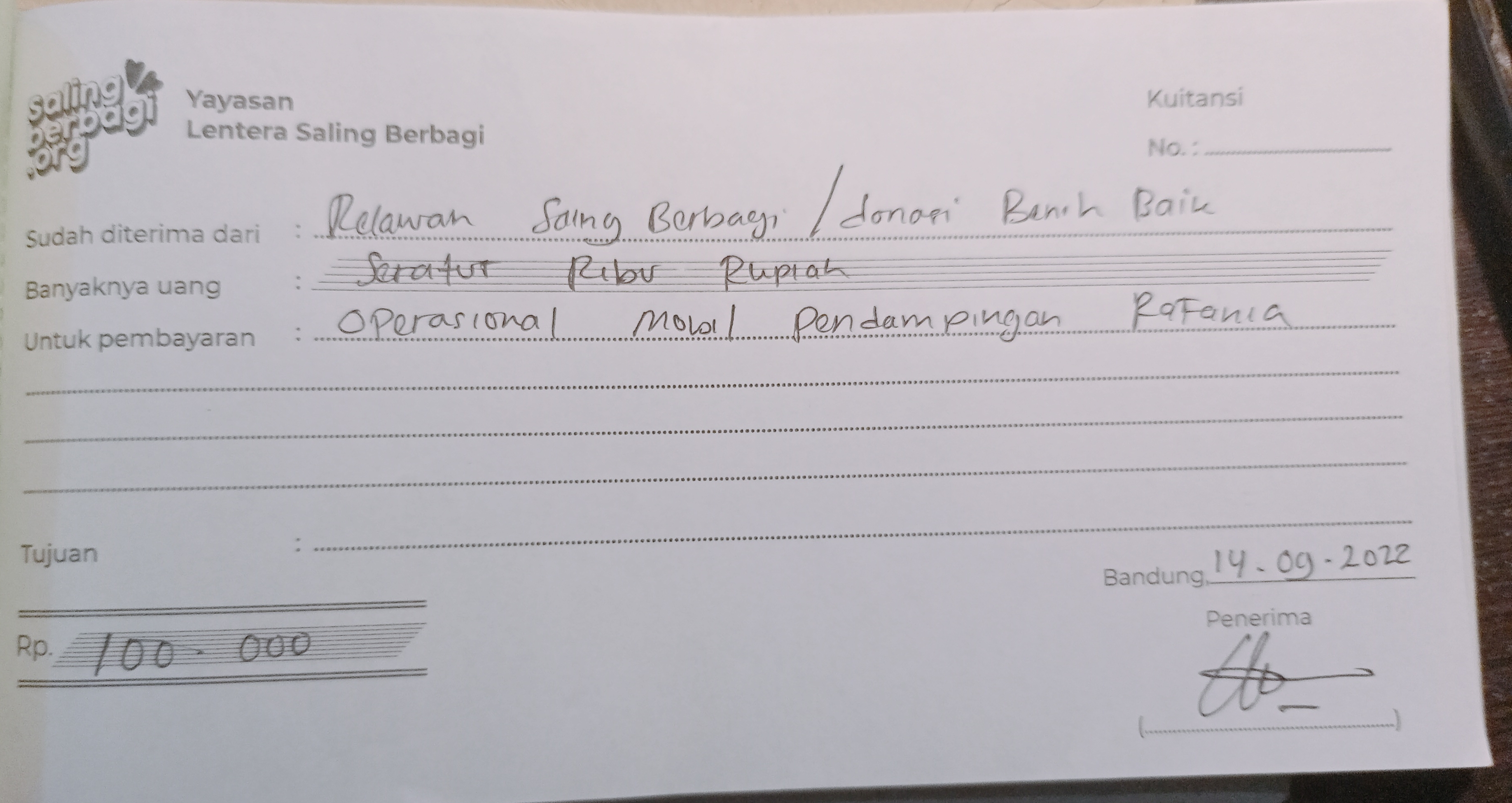 Ke rekening ****7007 a/n YAYASAN LENTERA SALING BERBAGI