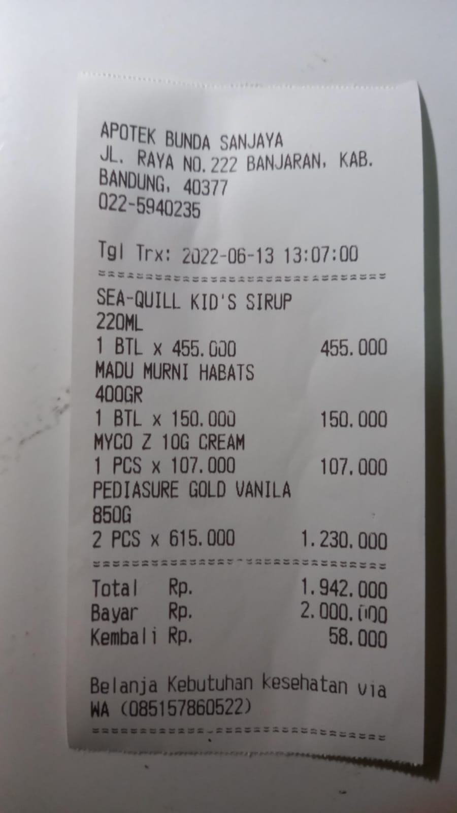 Tanggal 13 Juni kami menyampaikan penyaluran untuk pembelian madu, susu dan vitamin sesuai saran dari dokter untuk pemenuhan nutrisi Nia di Bulan Juni.