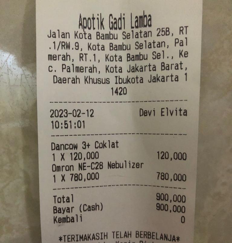 Dana digunakan untuk 1. Susu Dancow 3+ 800 gr Rp110.000 2. Sisanya digunakan untuk tambahan pembelian alat Nebulizer seharga Rp700.000.2023-02-09 17:15:04