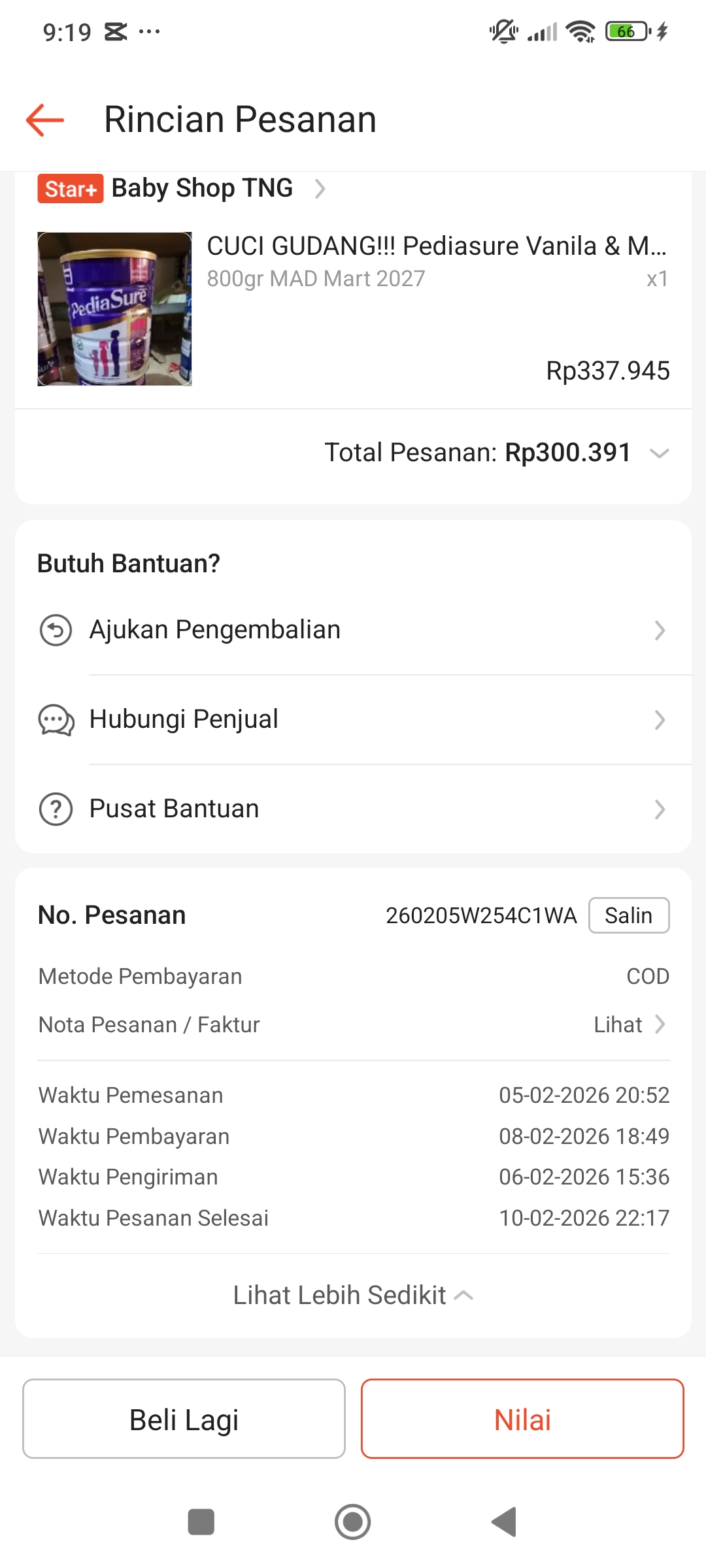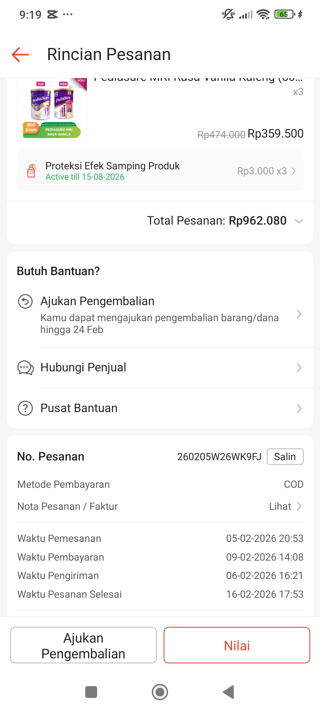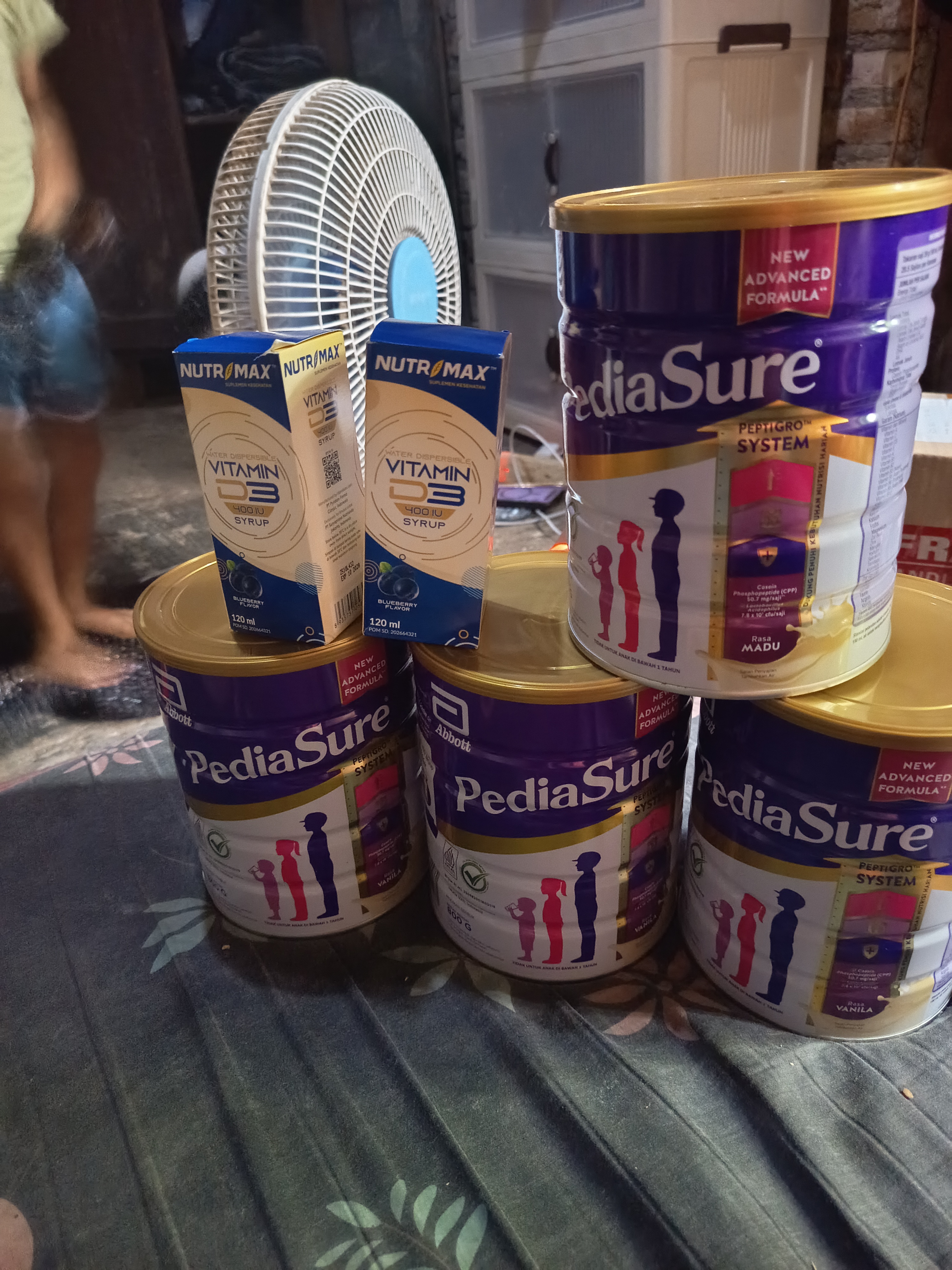 Dana digunakan untuk susu pediasure 4 kaleng 800g Rp300.000 x 4 = Rp1.200.0002025-10-02 07:11:25