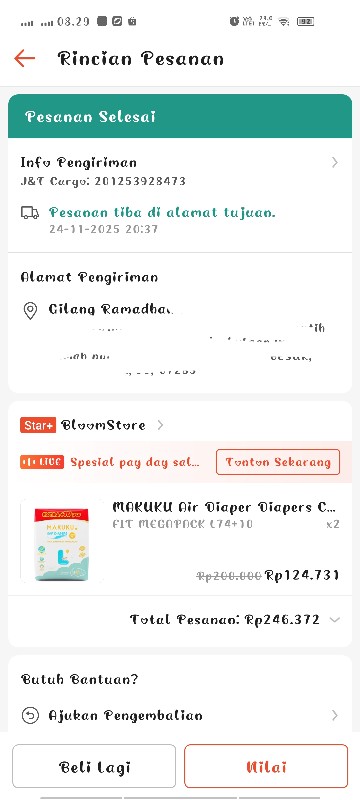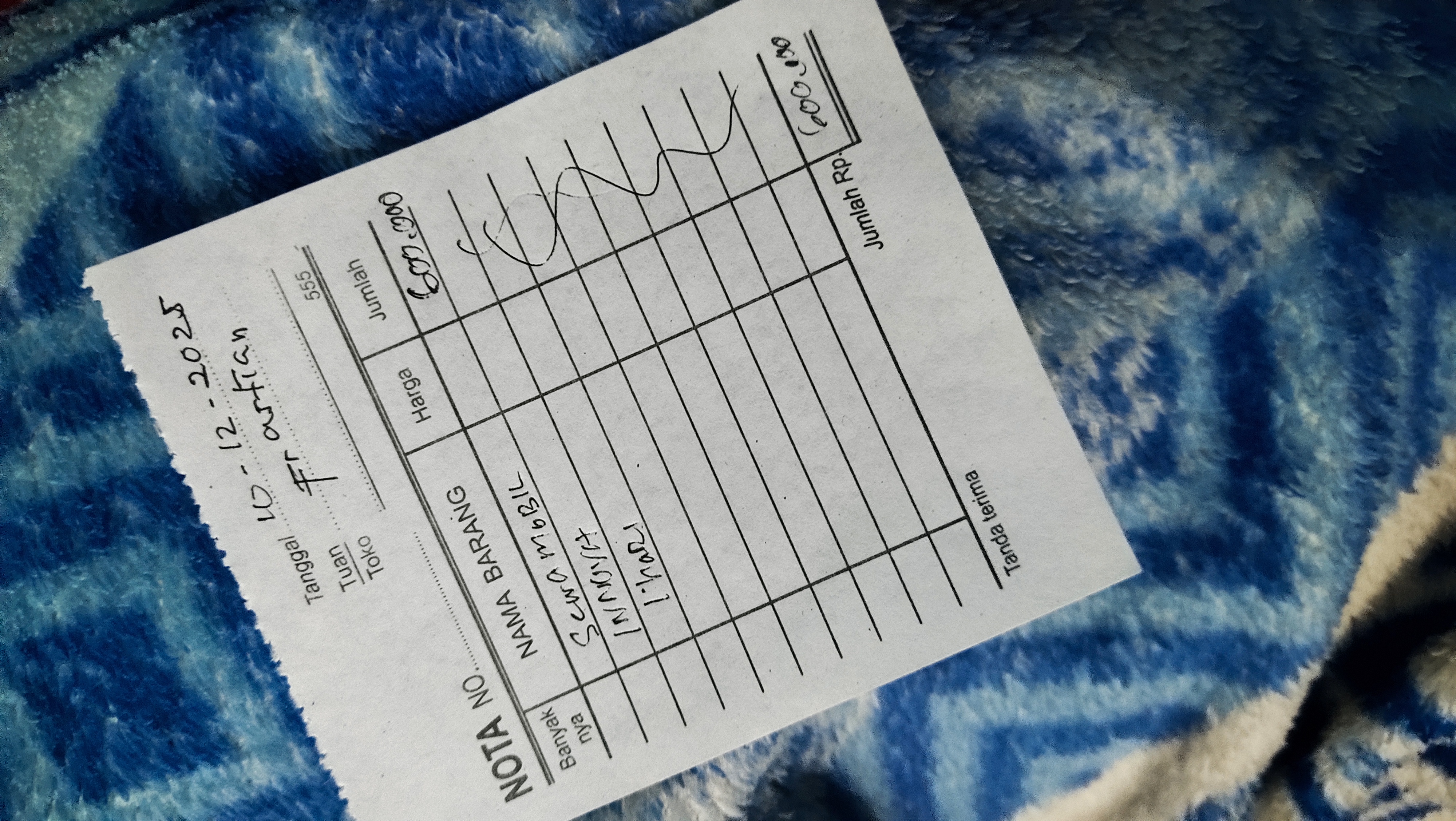 Dana diginakan untuk 1. Susu Dancow 1+ 1kg 3dus Rp. 298.000 2. Pampers makuku Xl 24 8ball Rp. 442.0002025-05-08 09:38:35