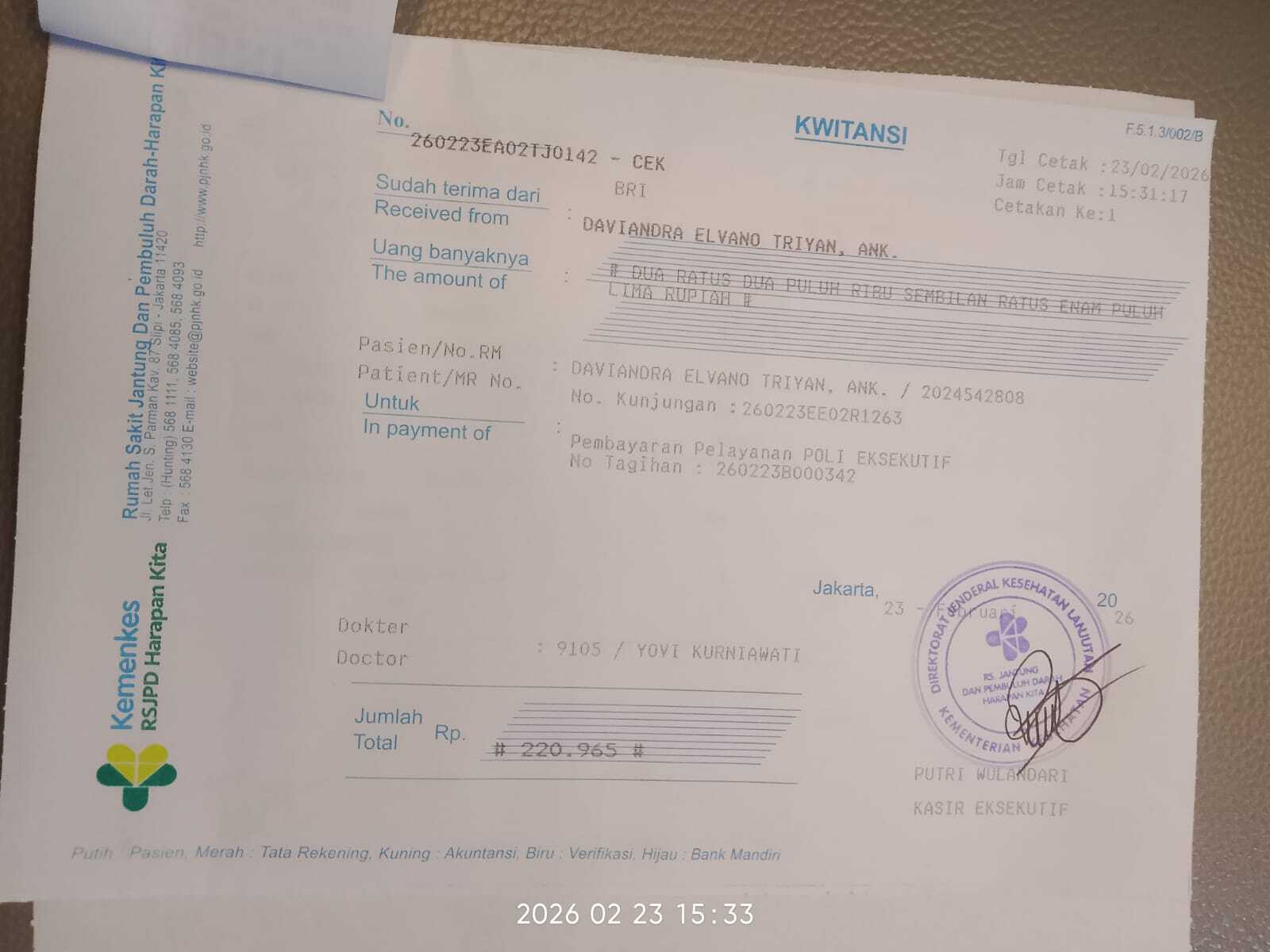 Alhamdulillah, akhirnya Daviandra bisa menjalani kontrol di Rumah Sakit Harapan Kita, Jakarta Barat.