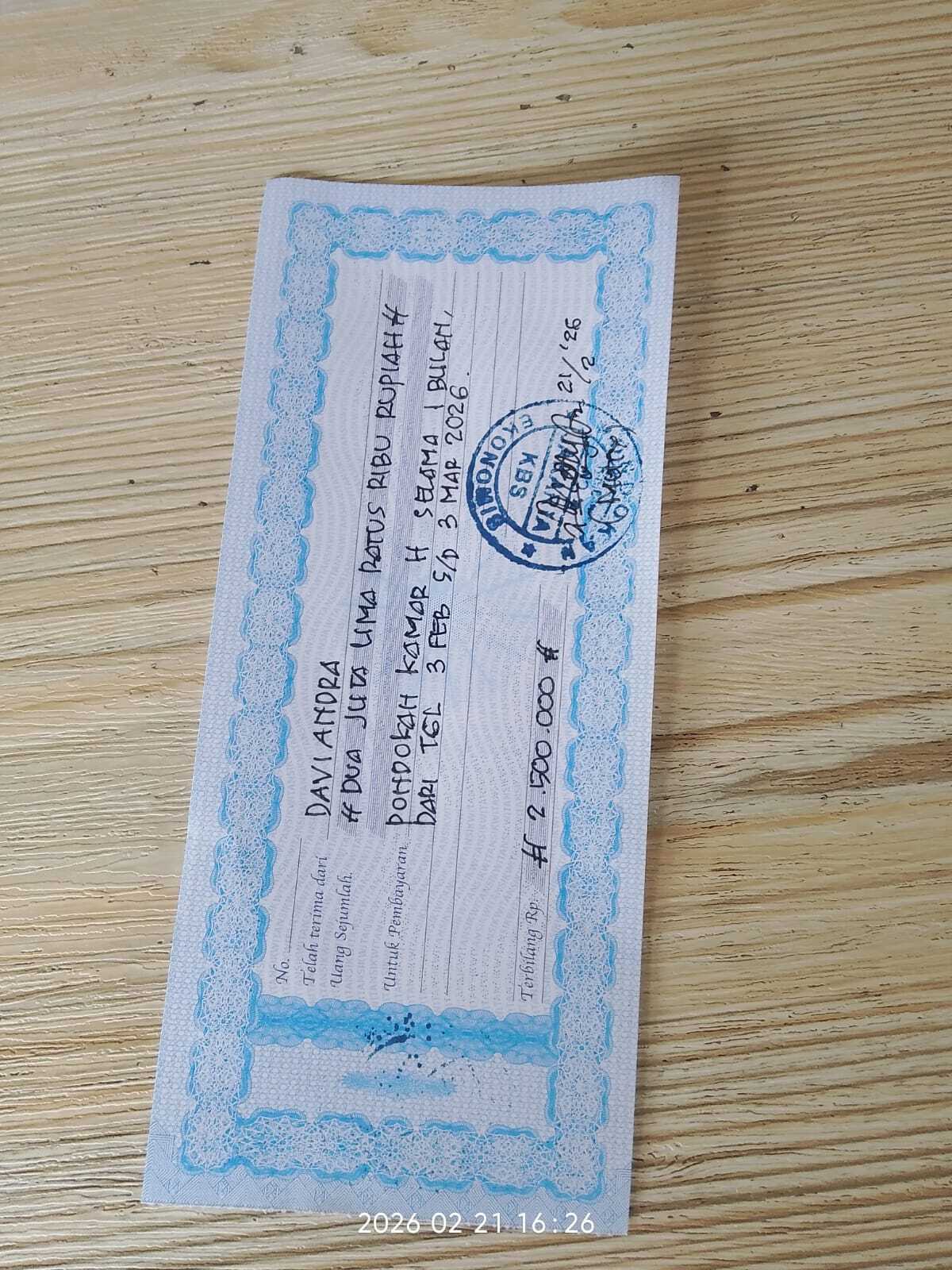 Dana digunakan untuk 1. Pembayaran kost Jakarta 1 bulan Rp2.500.000 2. Transportasi sewa mobil ke Jakarta Rp1.000.000 3. Pampers baby happy 2 ball Rp100.000 4. Obat captopril dan sildenafil Rp250.000 5. Susu uht ultra Mimi 20 pcs Rp100.000 6. Biaya konsumsi di Jakarta 1 bulan Rp1.550.0002026-01-27 14:02:24