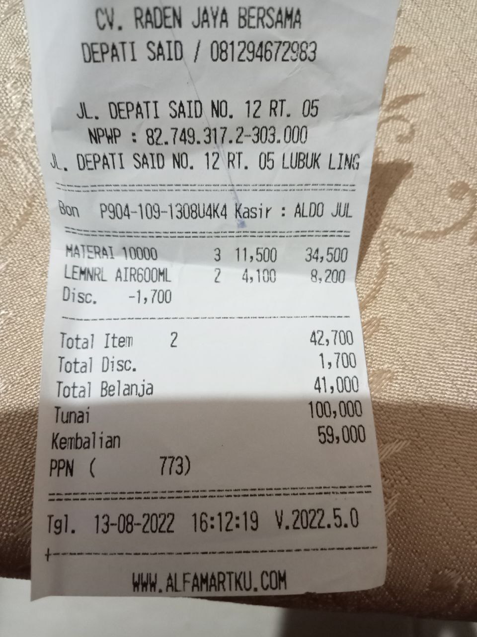 Rp 19.343.554 dari Rp 16.000.000