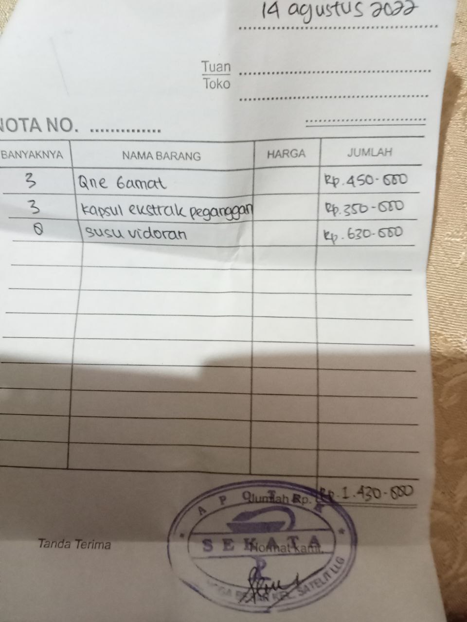 Pembelian Obat, Susu, Pampers dan Check Up ke Rumah Sakit2022-03-11 07:37:49
