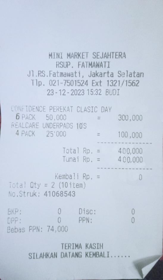 Dana digunakan untuk tambahan pembelian Pampers Confidence Classic day perekat L 7 pcs Rp50.000.2023-11-29 17:55:10