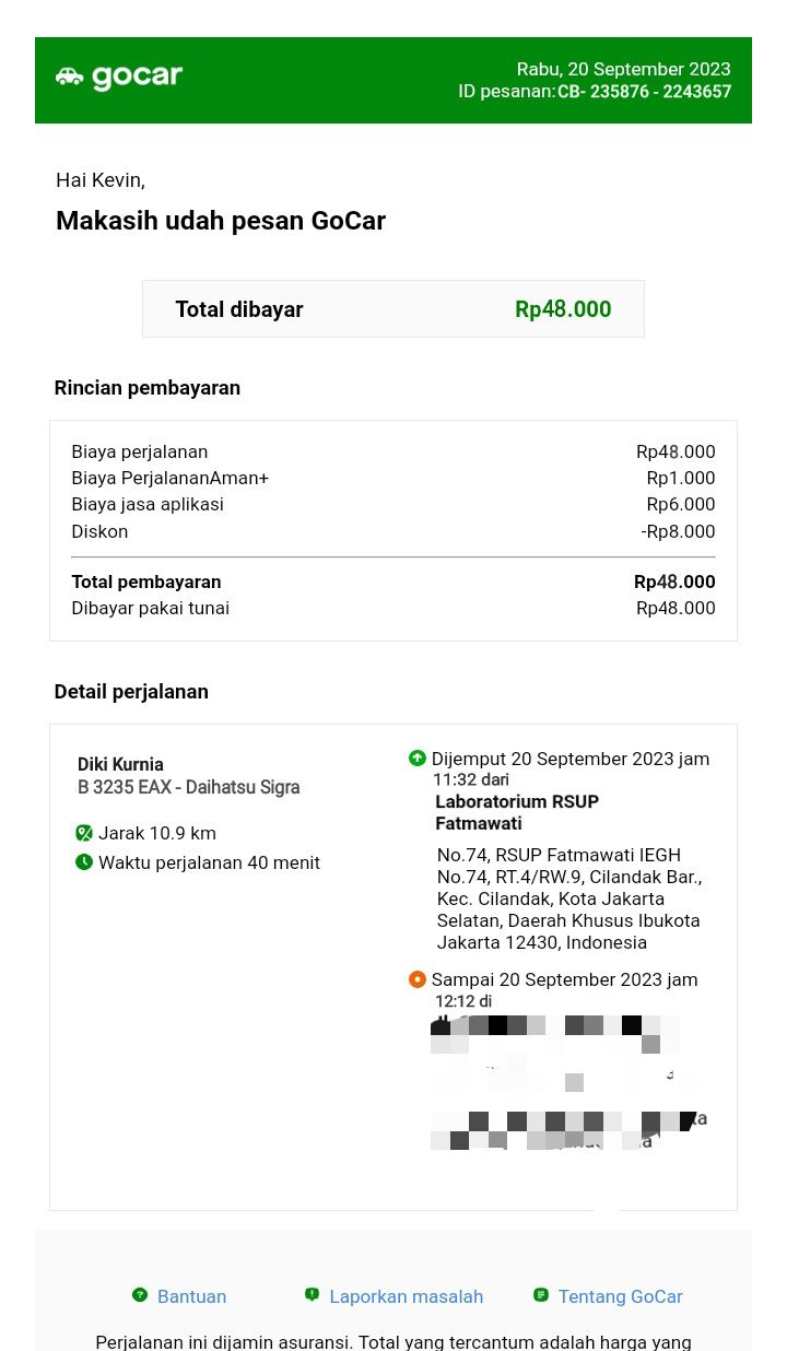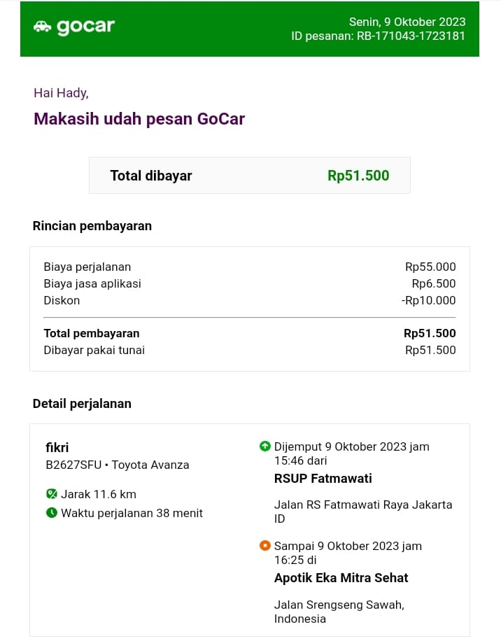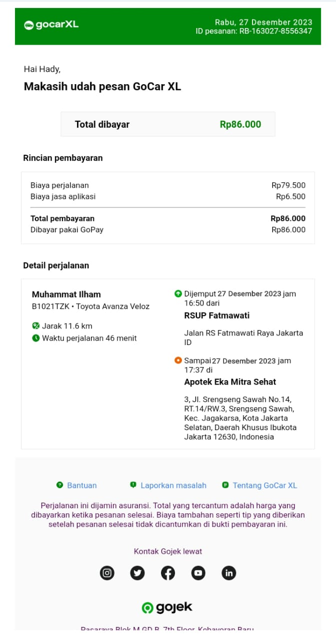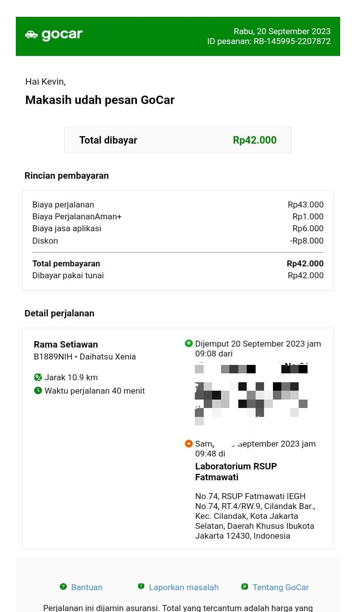 Oya, bantuan dana dari TemanBaik sudah digunakan dengan baik untuk biaya transportasi online pulang-pergi ke RSUP Fatmawati dan biaya pemeriksaan ke dokter onkologi non-BPJS (karena kondisiku yang sudah parah).