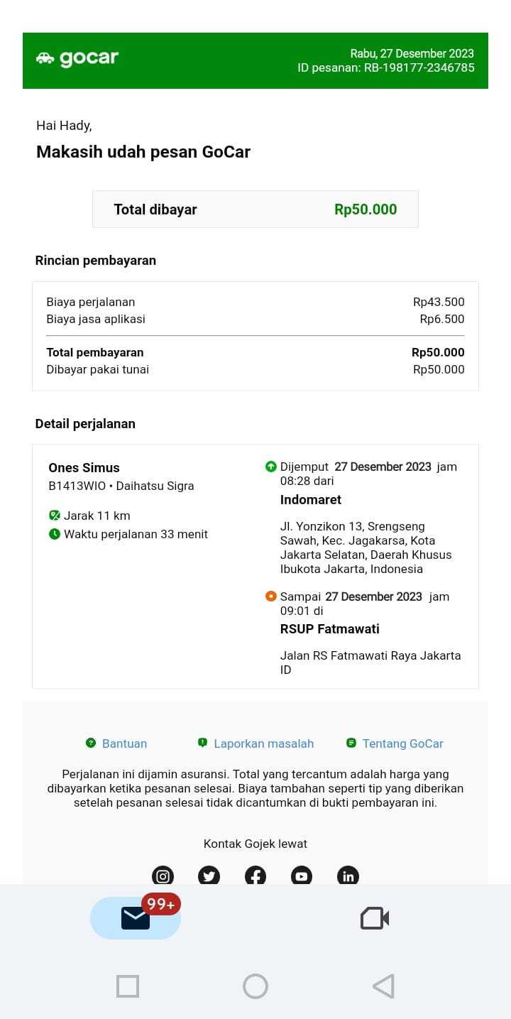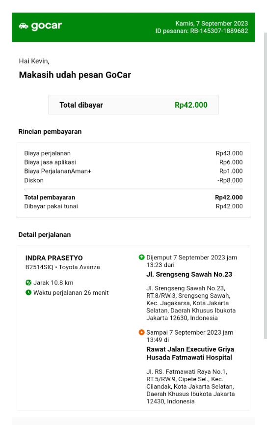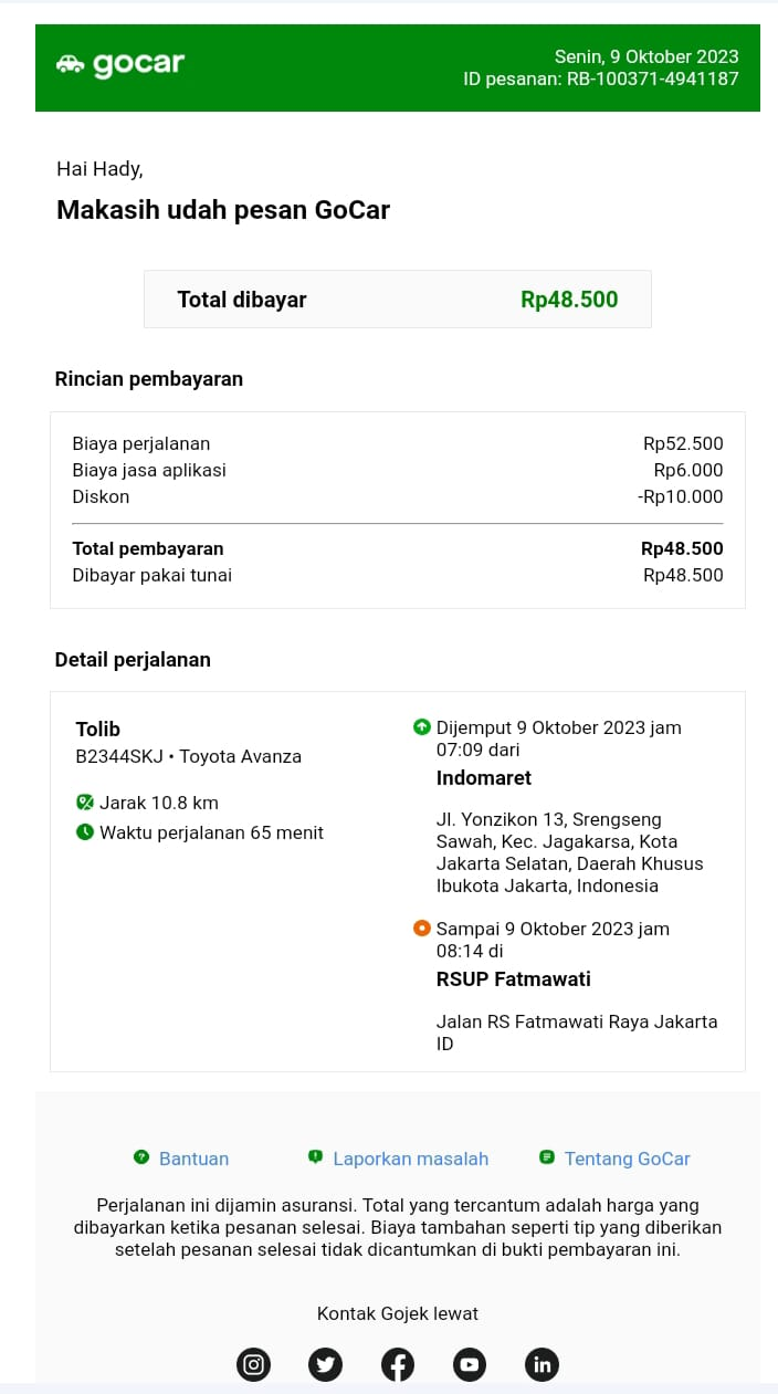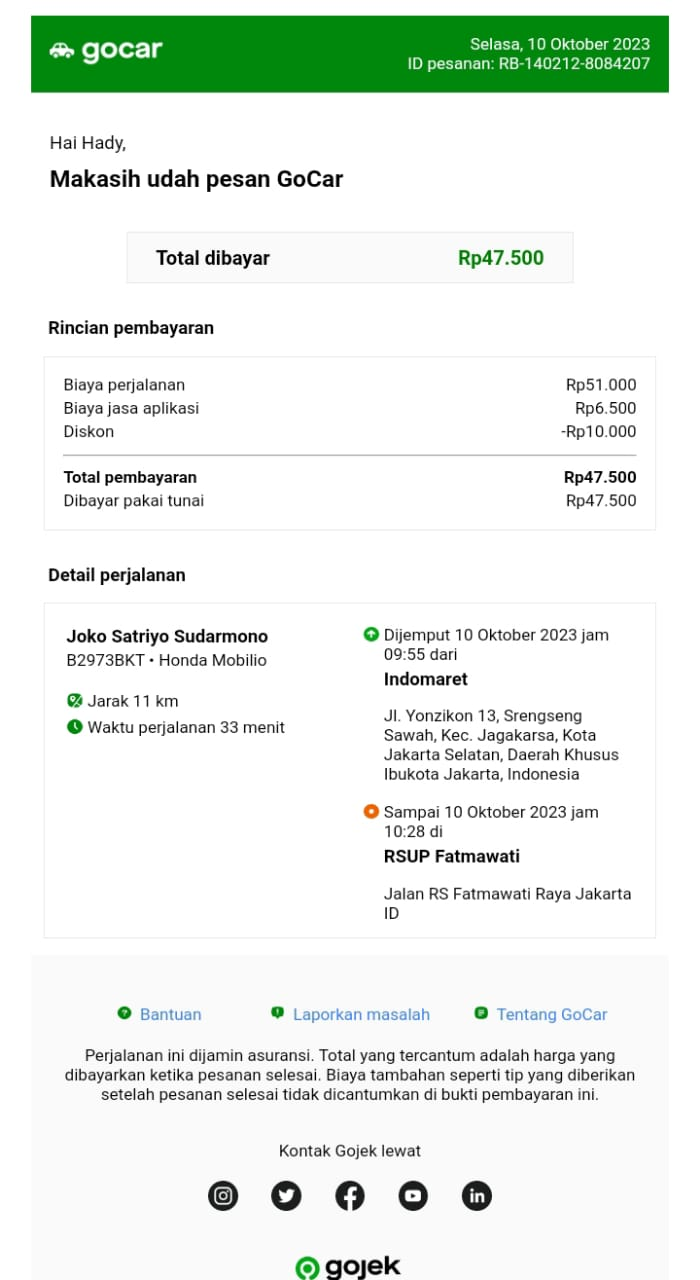 Oya, bantuan dana dari TemanBaik sudah digunakan dengan baik untuk biaya transportasi online pulang-pergi ke RSUP Fatmawati dan biaya pemeriksaan ke dokter onkologi non-BPJS (karena kondisiku yang sudah parah).