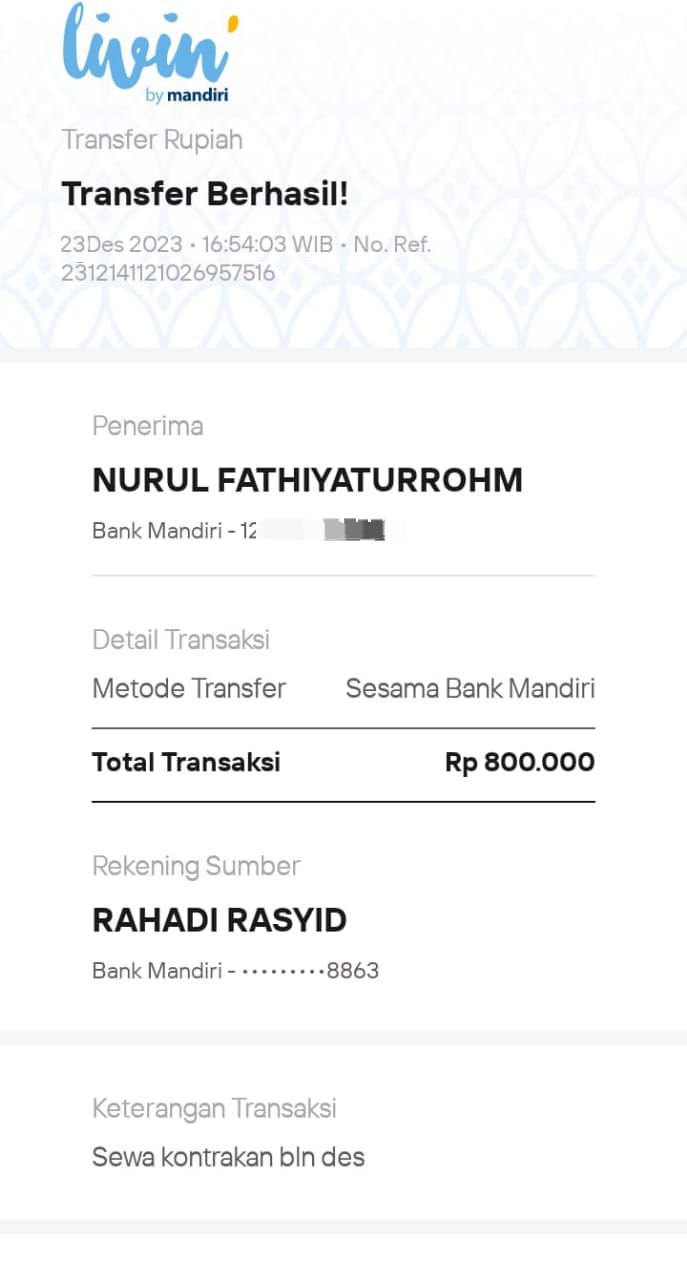 Ke rekening ****1418863 a/n Rahadi Rasyid