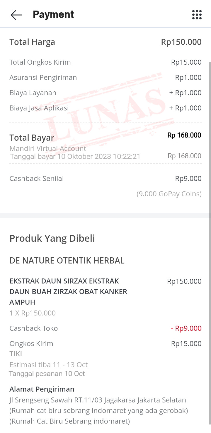 Maka dari itu, aku sangat terbantu oleh uluran tangan TemanBaik, karena bantuan dana dari kalian sudah aku gunakan untuk pembelian obat herbal Zirzak. Dana juga sudah aku gunakan untuk biaya transportasi online pulang-pergi ke RSUP Fatmawati.