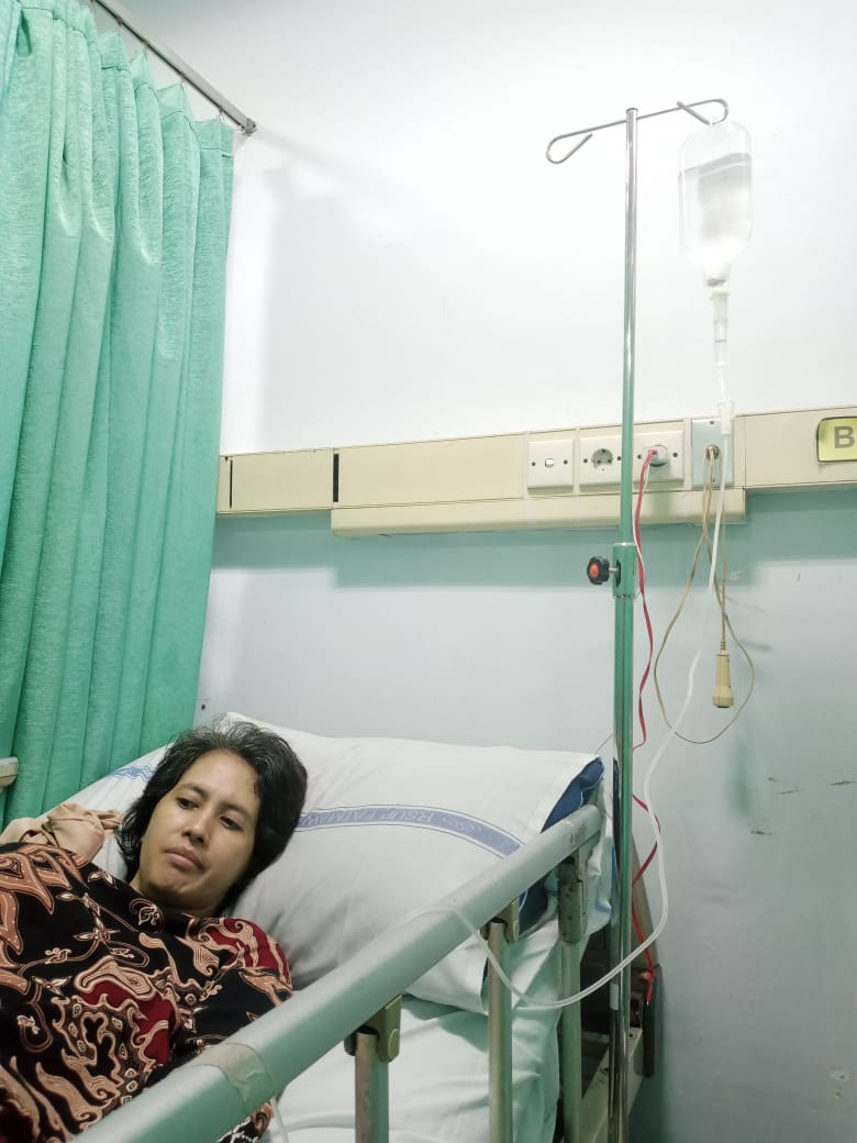 Saat ini badanku lemas dan elektrolit tubuhku juga sangat menurun sehingga, aku harus menjalani rawat inap dan radioterapi di rumah sakit.