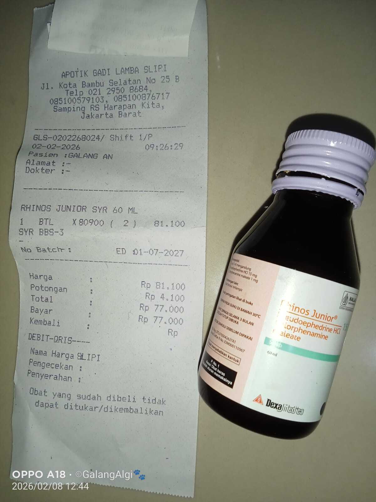2. Ongkir obat dari RS HarKit ke rumah (Lampung) Rp35.000