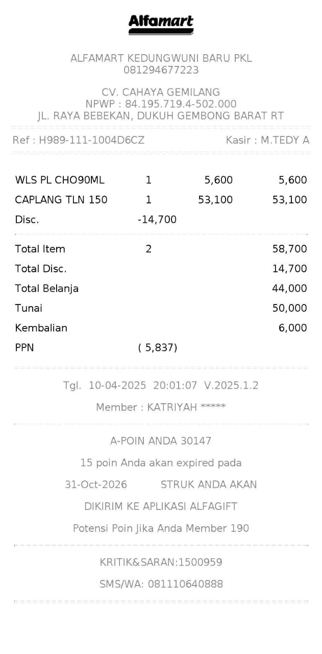Pembelian 1.oximeter merk yuwell Harga 234000 2.pampers mereies xxl Harga 70.000 3.susu vidoran 3+ 1kg Harga 70.000 4.susu vidoran 3+ 400gr Harga 40.000 jumlah 414.0002024-11-25 09:37:12