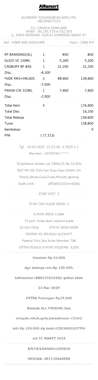 Dana digunakan untuk Susu vidoran 3+ Rp70.000 x 3 dus = Rp210.0002025-02-18 10:40:14