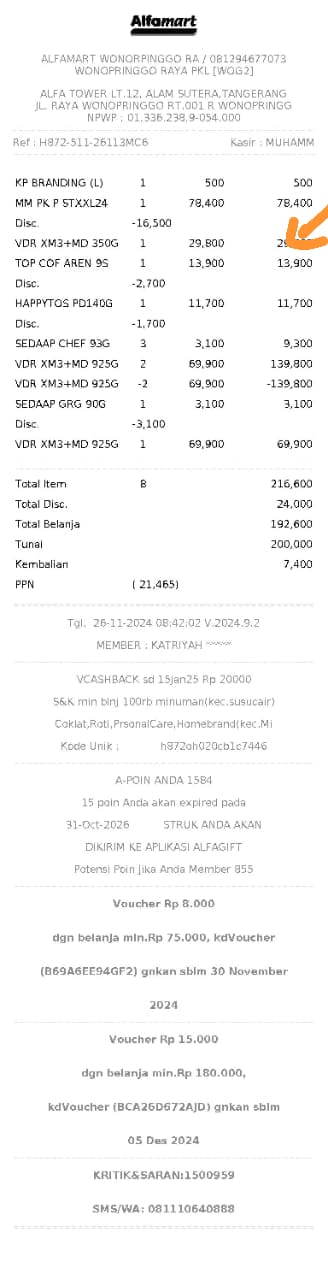 1.Membeli susu vidoran xmart 3+ (925 gram) Rp70.000 x 4 kaleng = Rp280.000