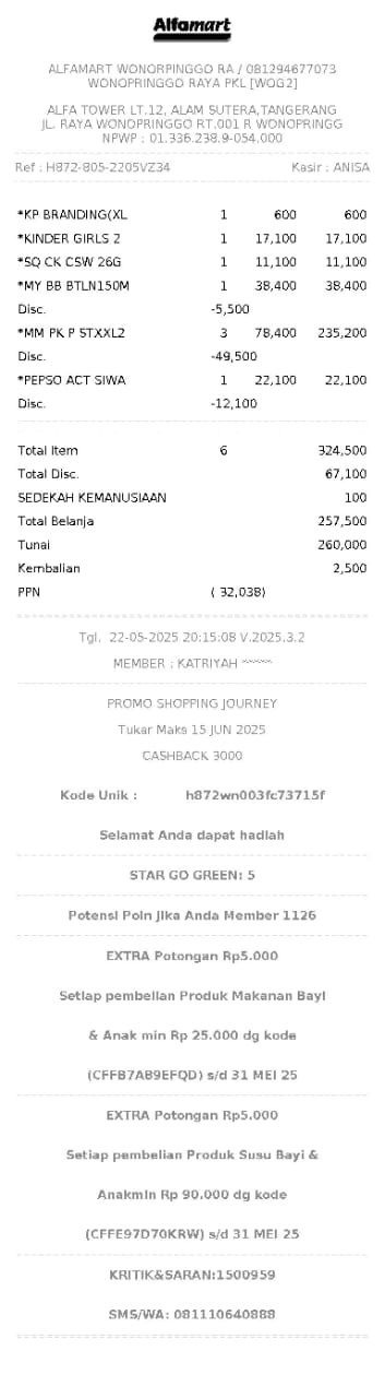 Dana digunakan untuk 1 Pampers mamy poko Rp70.000 x 3 ball= Rp210000 2 Minyak telon Rp370002025-05-22 15:36:14