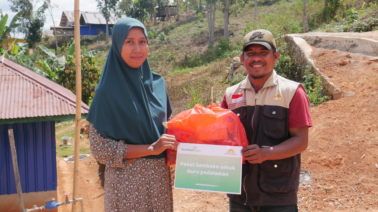 Kebaikan darimu telah disalurkan dalam bentuk paket sembako untuk dua guru di pedalaman Nusa Tenggara Timur, tepatnya di Desa Biting, Kecamatan Elar, Kabupaten Manggarai Timur.