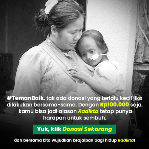 #TemanBaik, tak ada donasi yang terlalu kecil jika dilakukan bersama-sama. Dengan Rp100.000 saja, kita bisa jadi alasan Radikta tetap punya harapan untuk sembuh. Yuk, klik Donasi Sekarang dan bersama kita wujudkan keajaiban bagi hidup Radikta!