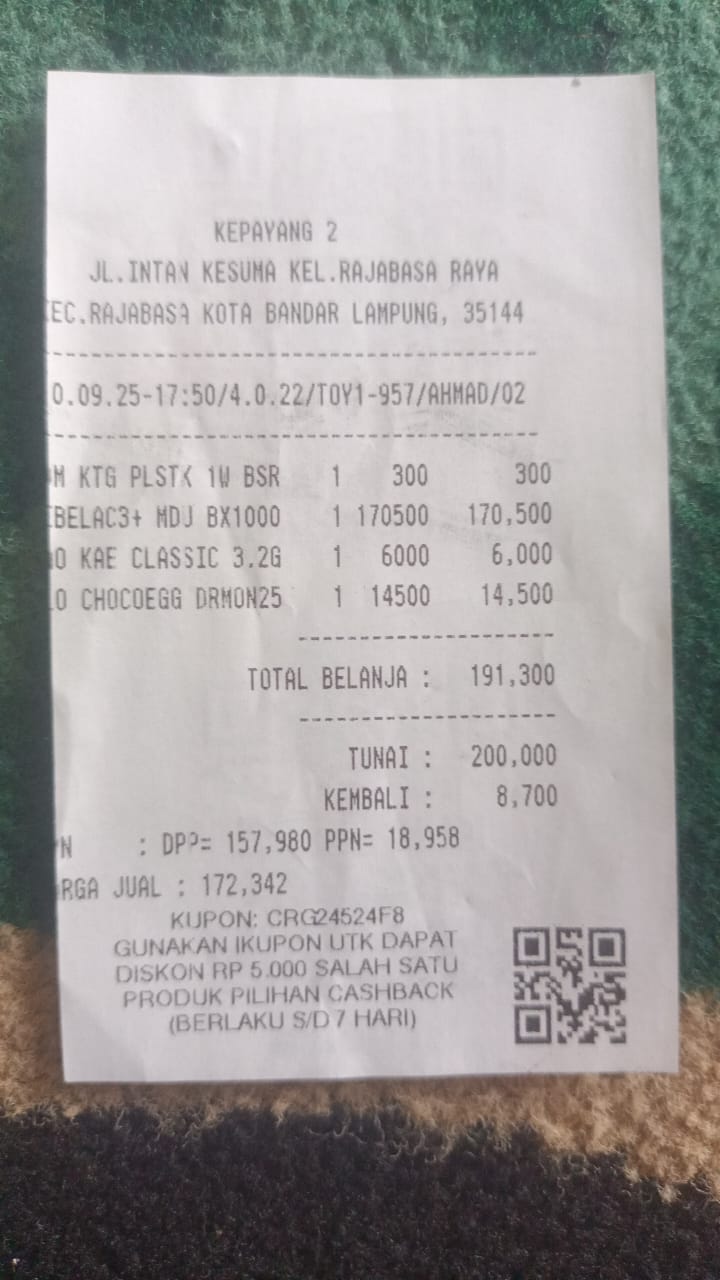 Dana digunakan untuk 1. Pampers mamy poko Rp70.000 2. Susu bebelas Rp185.000 x 5 dus = Rp925.0002024-12-23 09:19:31
