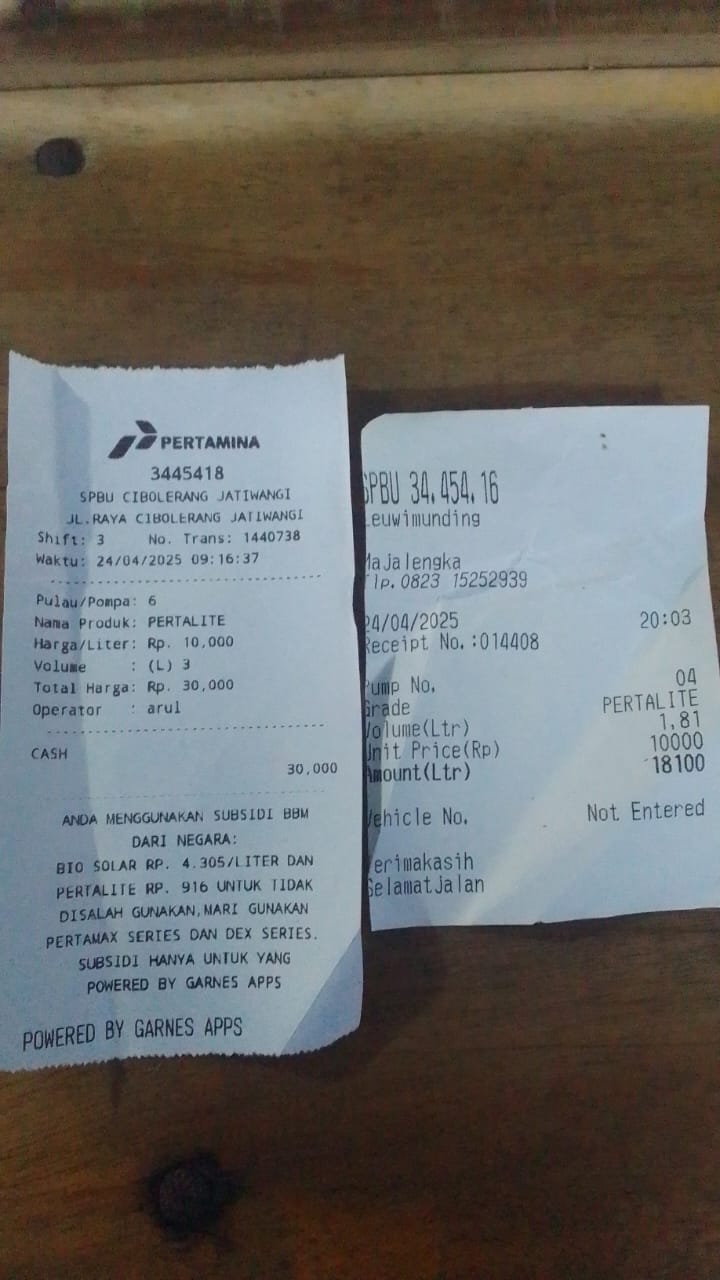 Dana digunakan untuk 1. Pembayaran BPJS kesehatan Rp.105.000 2. Transportasi bensin motor ke RS Mitra Plumbon Rp40.000 × 2 = Rp.80.000 3. Transportasi Transportasi bensin motor ke Klinik Jantung hasna medika Rp.60.000 4. Transportasi & akomodasi ke RS Mata Cicendo Bandung Rp.1.200.000 5. Obat vitrolenta 10ml Rp.40.000 6. Obat mecobalamin 500mg Rp.12.000 7. Konsumsi kontrol Rp142.9662025-02-20 09:17:42
