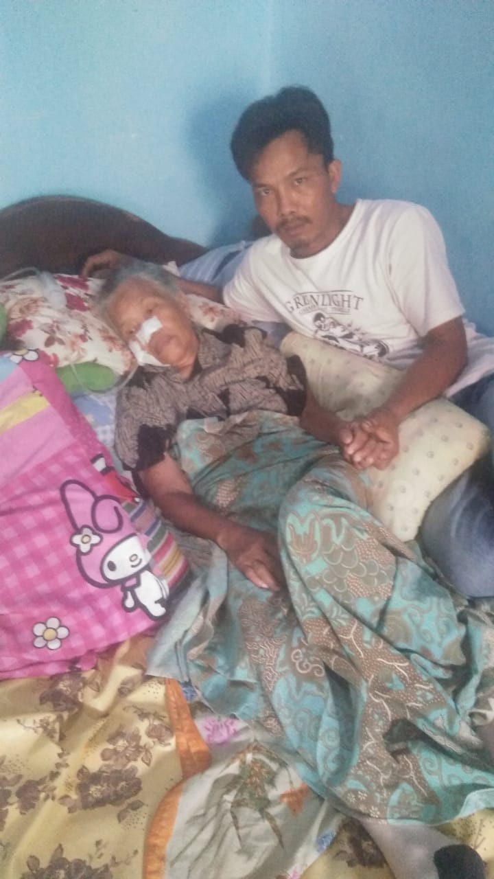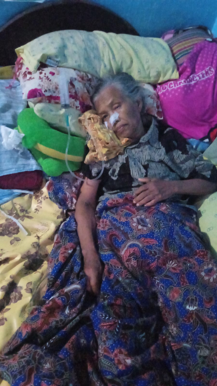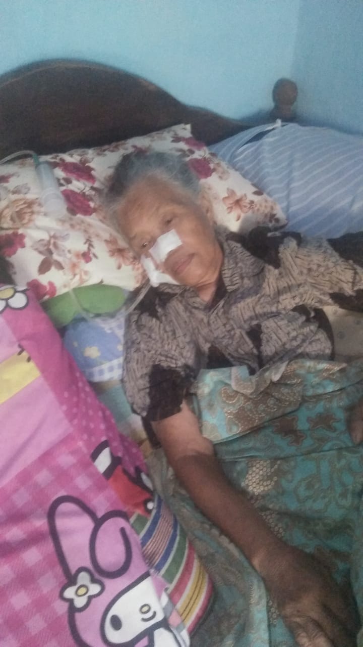 Perkenalkan saya Siti Khodijah, menantu dari Ibu Saimah (79 tahun) yang saat ini menderita sakit penyumbatan saraf dan juga stroke. Akibat dari kedua penyakitnya tersebut, Ibu Saimah hanya bisa terbaring lemah di tempat tidur.