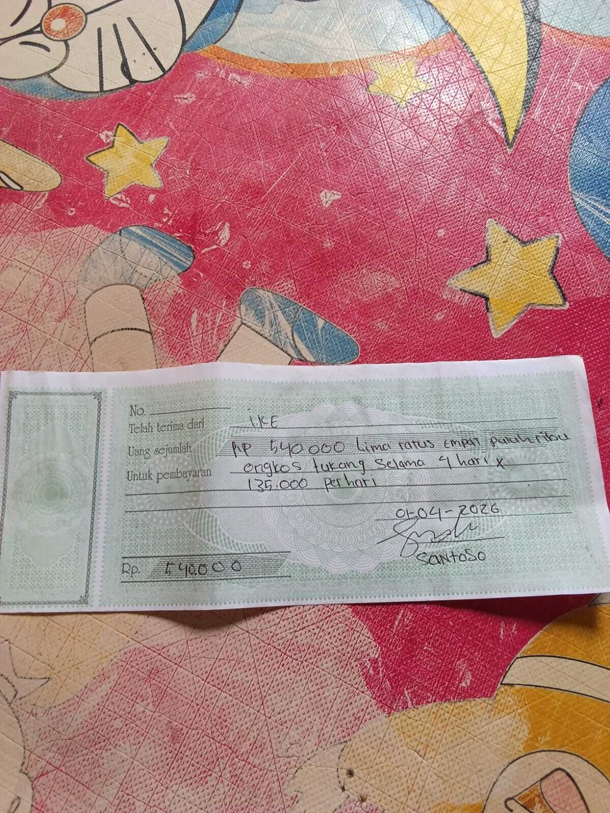 Dana digunakan untuk 1. Semen Rp56.000 x 12 sak= Rp672.000 2. Biaya jasa kuli Rp135.000 x 4 hari = Rp540,0002025-03-26 09:45:35