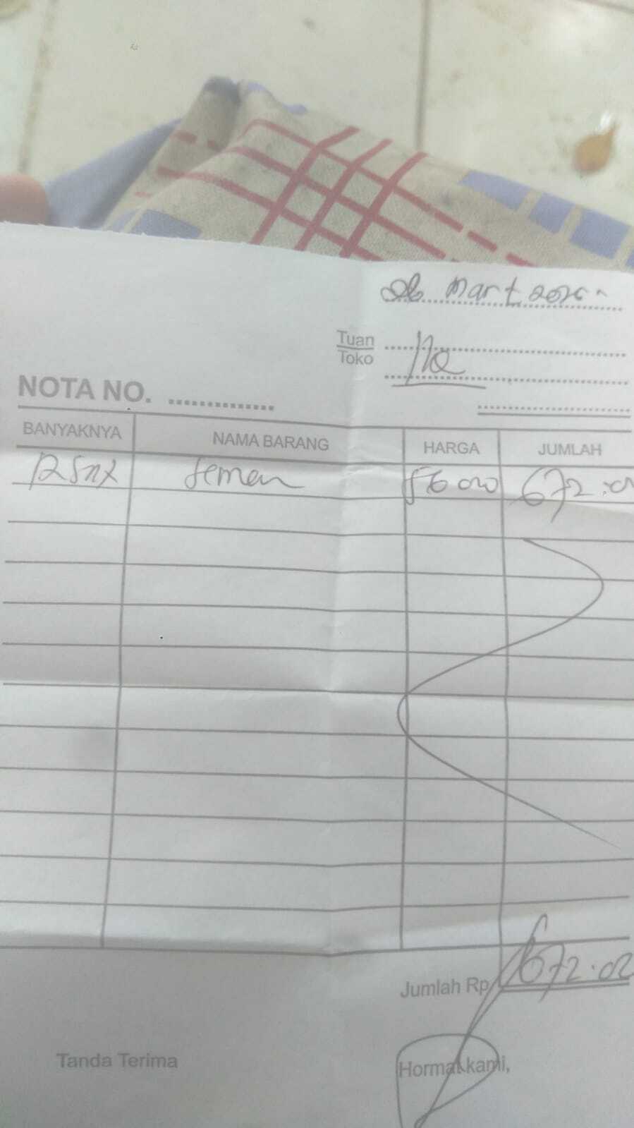 Dana digunakan untuk 1. Semen 5 sak x Rp 57.000 = Rp285.000. 2. Batu bata 500pcs x Rp.600 =Rp300.000. 3. Biaya tukang kerja 4 hari x Rp.140.000 = Rp 560.0002026-01-15 10:24:35