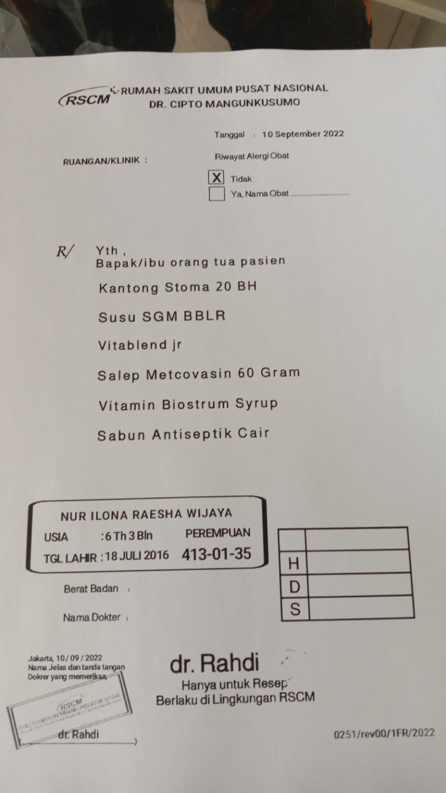 Awalnya, dana dari TemanBaik kami gunakan untuk membeli kantong kolostomi. Namun, kami alihkan untuk membeli keperluan Ilona seperti susu, makanan, serta vitamin. Untuk obat dan biaya rumah sakit telah dibantu oleh BPJS.
