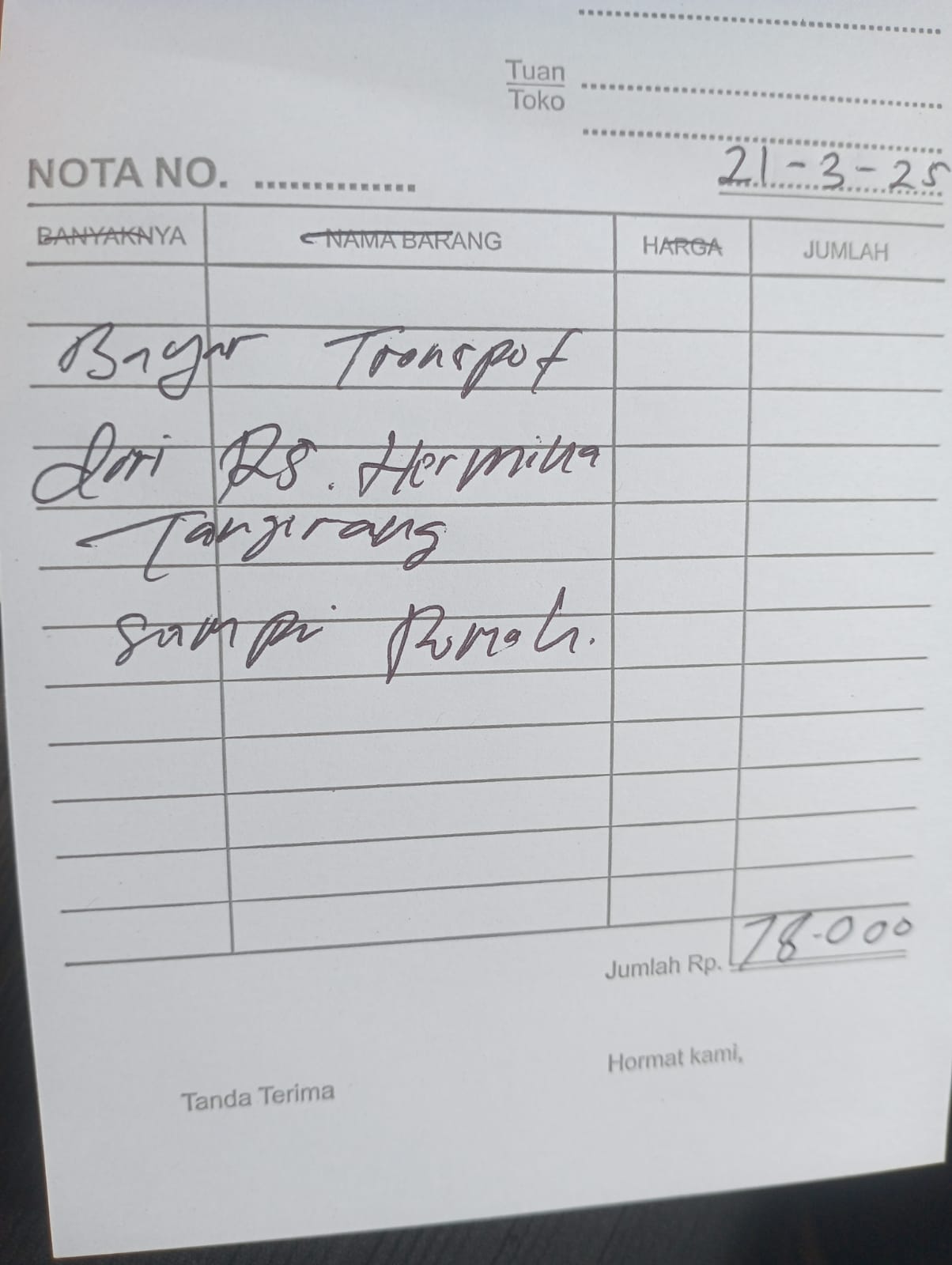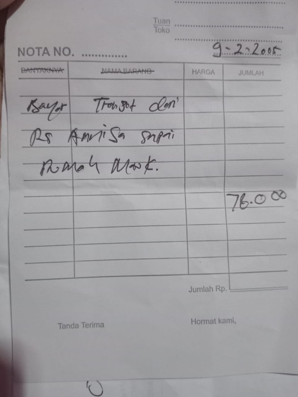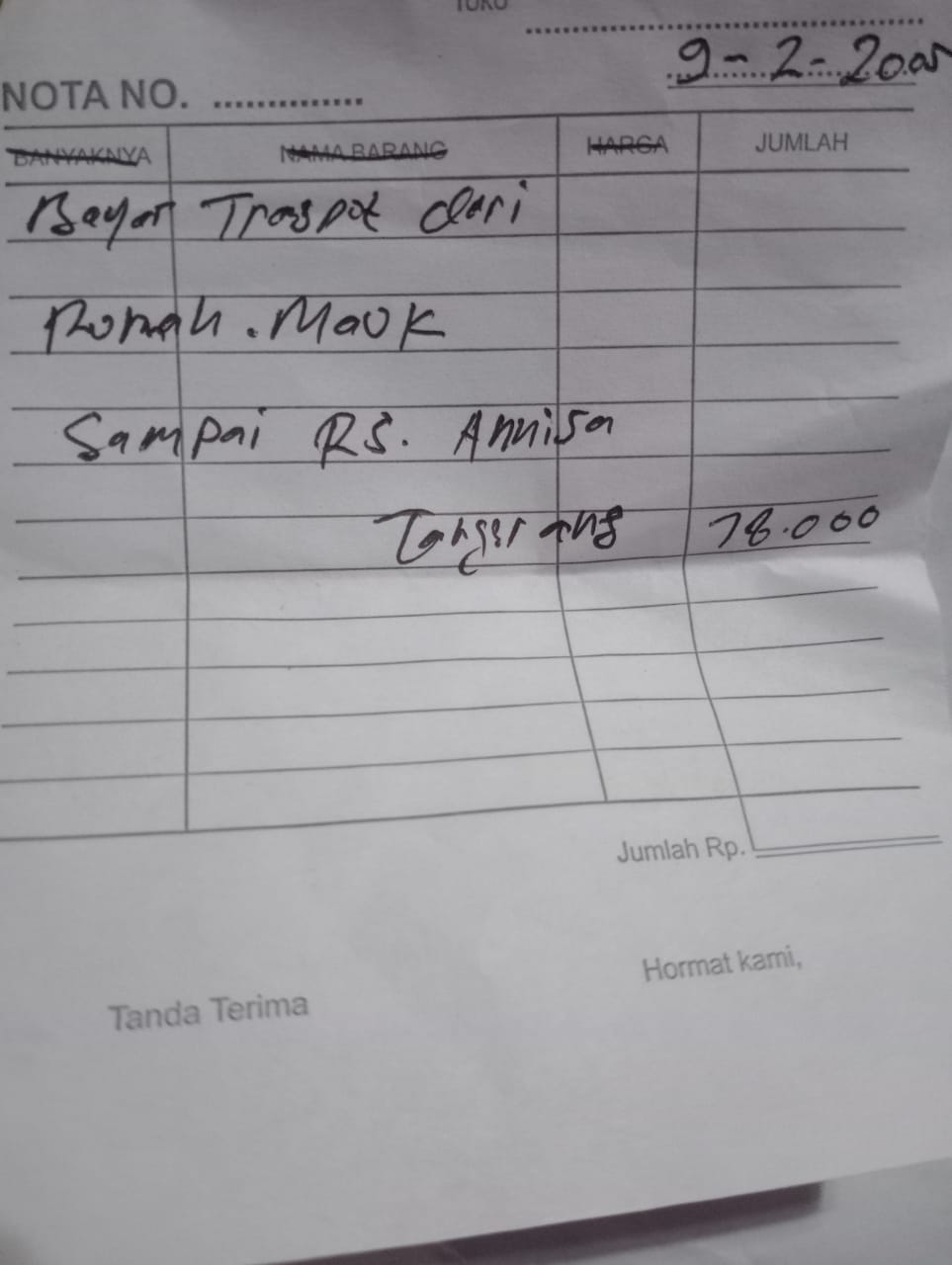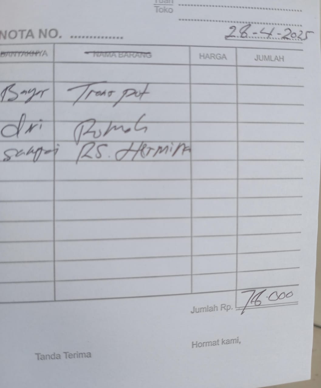 Dana digunakan untuk 1. Reimburse Sepatu Terapi Rp850.000 2. Transport Ke Hermina Ke An-nisa Naik Gojek Rp156.000 pp x 3 kali kontrol = Rp468.000 3. Pampers Rp70.000 x 3 ball = Rp210.000.2025-02-07 09:48:58