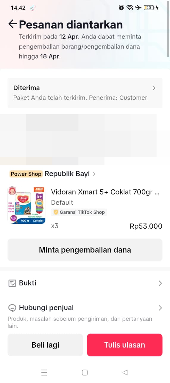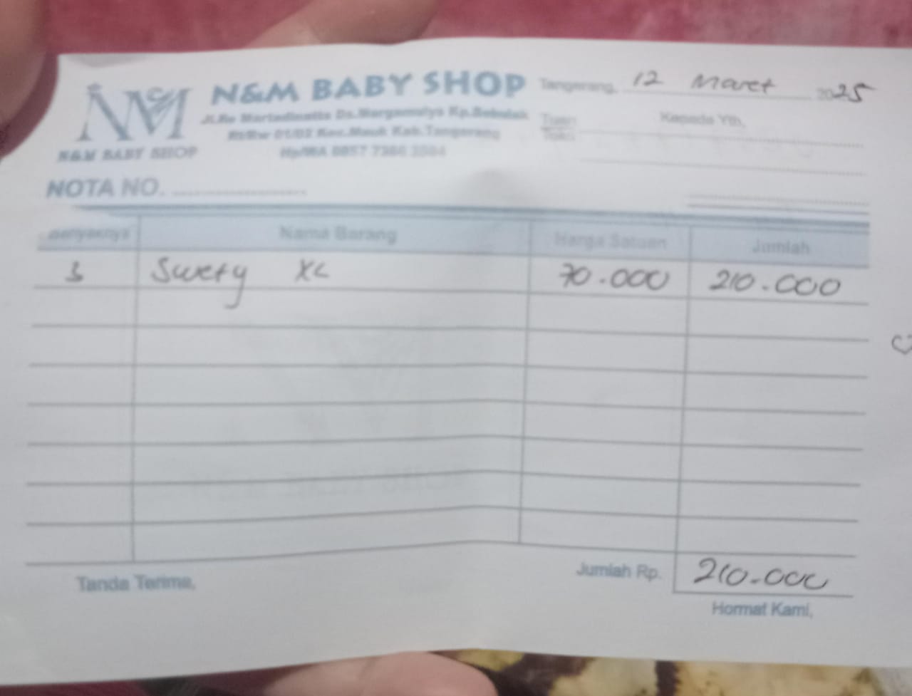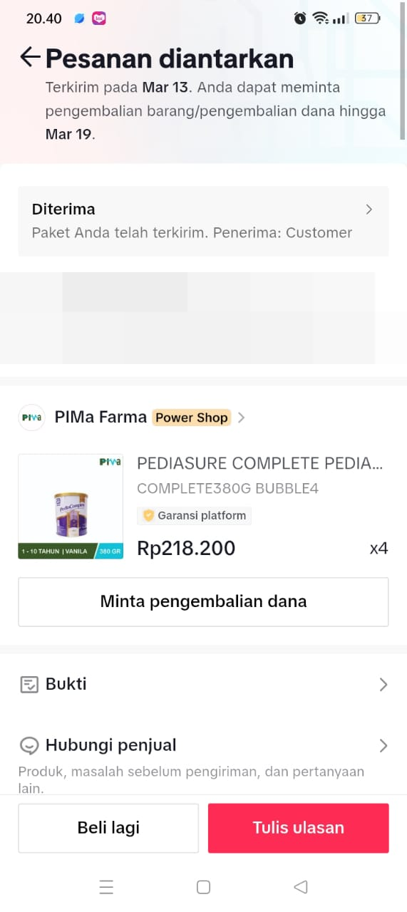 Dana digunakan untuk 1. Susu Pedia Complete 210.700×4 Kaleng= 842.800 2. Transport Ke Hermina Naik Ojek Rp156.000 pp x 3kali kontrol = Rp468.000 3. Pempers Sweety Rp70.000 x 3 ball =210.0002025-03-12 09:12:37
