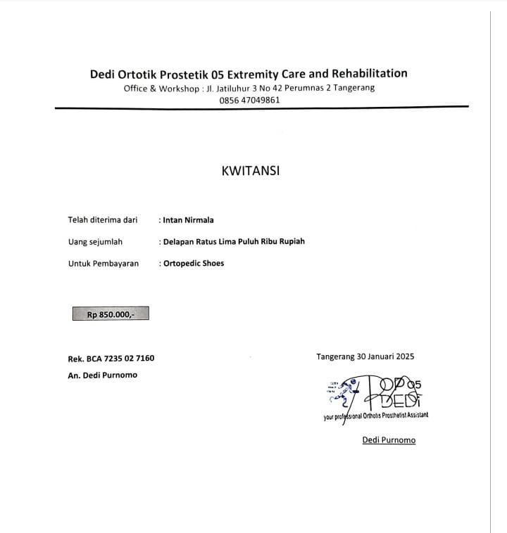 #TemanBaik, setiap donasi yang diberikan akan sangat berarti bagi Intan. Dengan sepatu AFO, bukan hanya fisiknya yang akan terbantu, tetapi juga harapan dan kebahagiaan keluarganya.