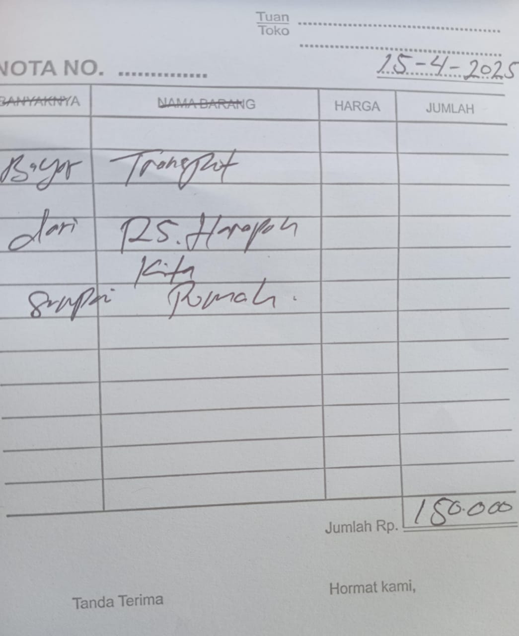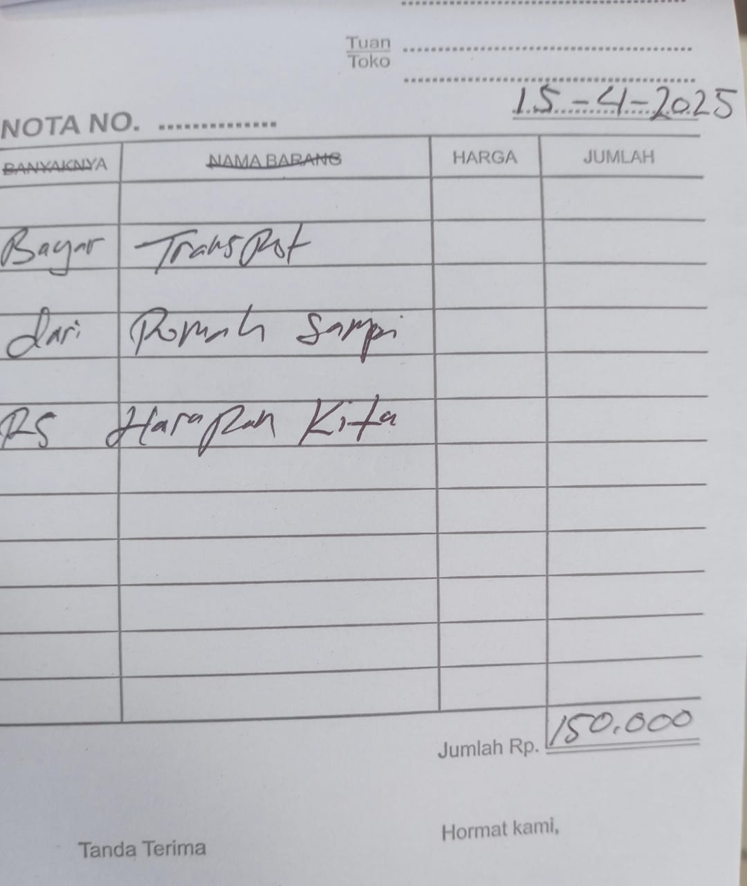 Dana digunakan untuk 1. Susu Vidoran X-Mart Rp53.000 x 3 dus = Rp159.000 2. Transportasi onlne Ke RS harapan Kita PP Rp300.000 3. Transport Naik Ojek ke RS Hermina PP Rp156.0002025-04-09 09:18:30