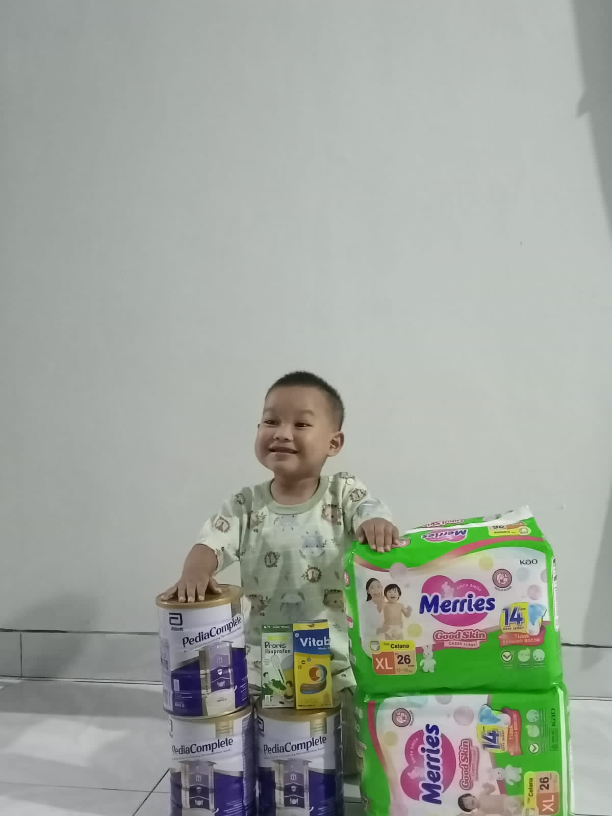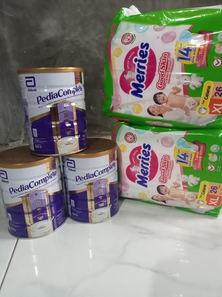 Bantuan dari #TemanBaik sudah digunakan untuk memberi beberapa kaleng susu, popok, tisu kering, tisu basah dan biaya makan irham.