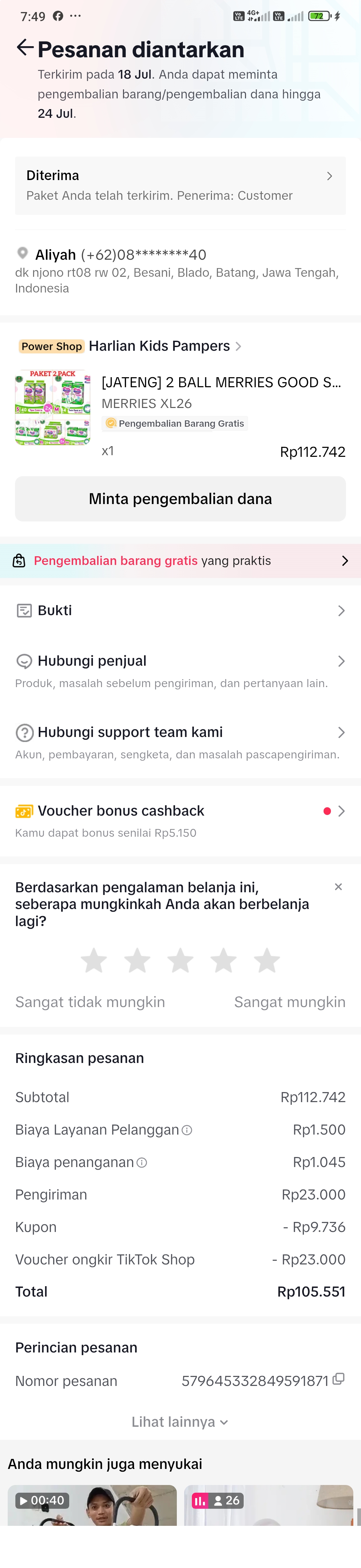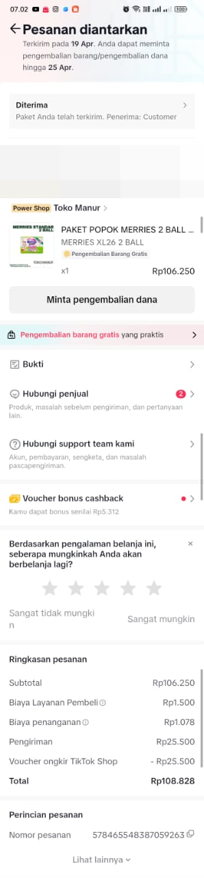 2. Pampers meries ukuran L 1 bal Rp88.800 X 2 = Rp177.600