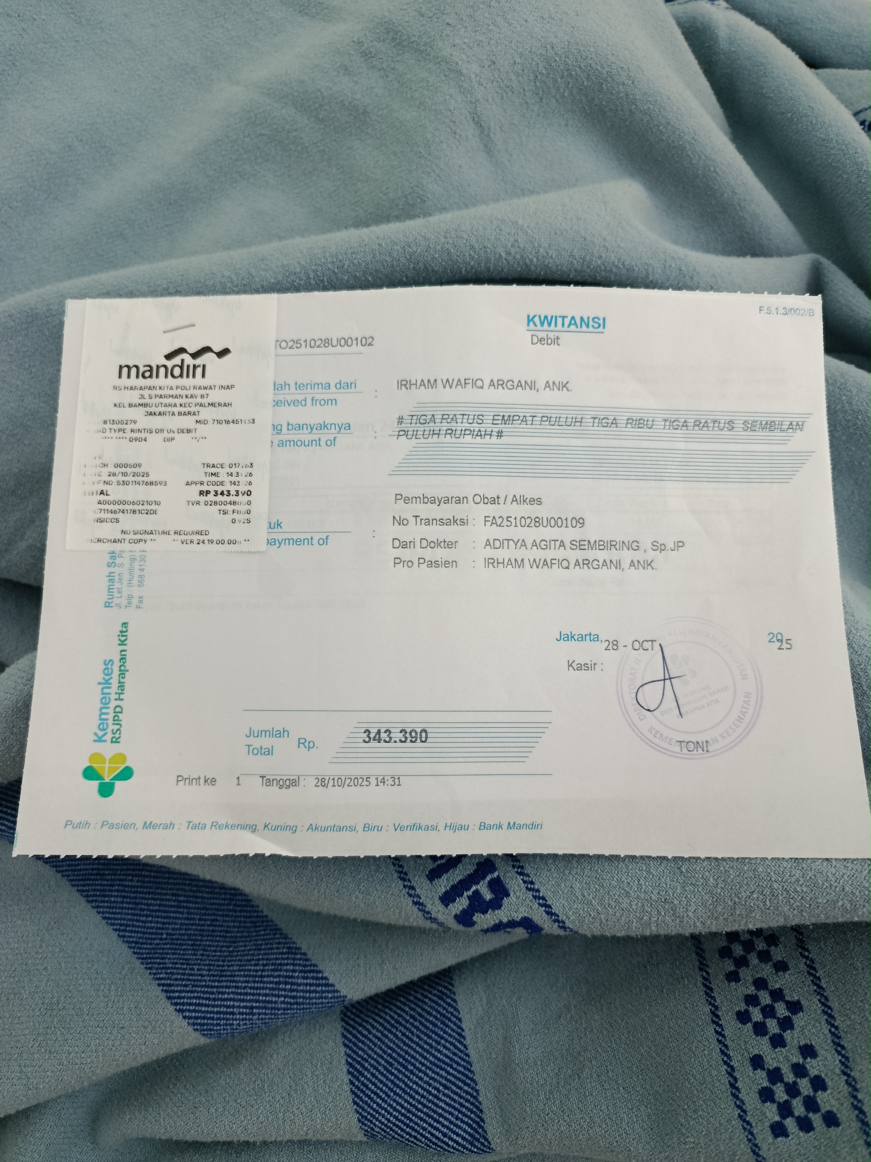 Oh Iya, dana bantuan dari #TemanBaik sudah diterima dan digunakan untuk biaya transportasi pengobatan ke Rumah Sakit Jantung Harapan Kita, biaya kos, dan membeli obat medis sidenafil.