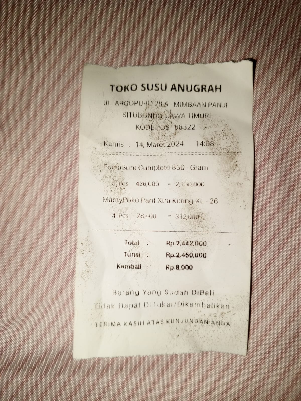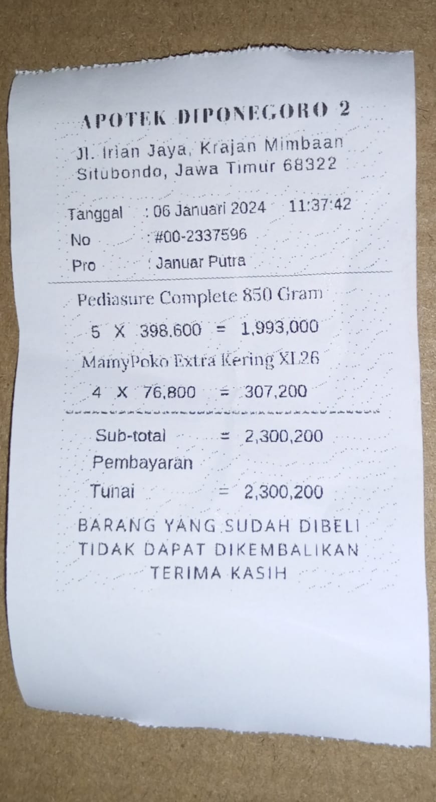 Dana dari TemanBaik sudah digunakan untuk membeli susu dan diapers untuk Adik Januar.