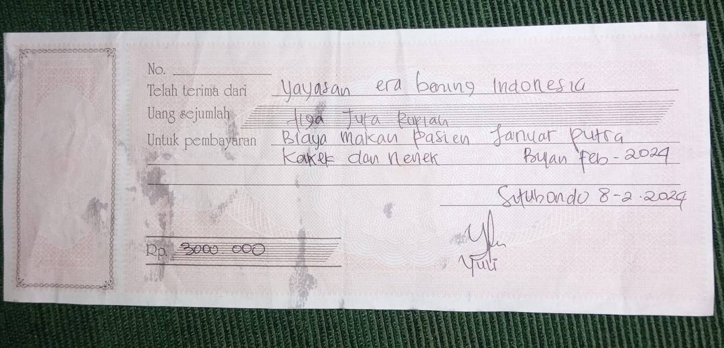 Saat ini kondisi Januar sedang tidak baik-baik saja, benjolan di dahinya kini semakin besar dan itu membuatnya selalu menangis kesakitan. Setelah dibawa ke RS Elizabeth Situbondo, Januar harus melakukan operasi di RS Dr. Soebandi Jember.