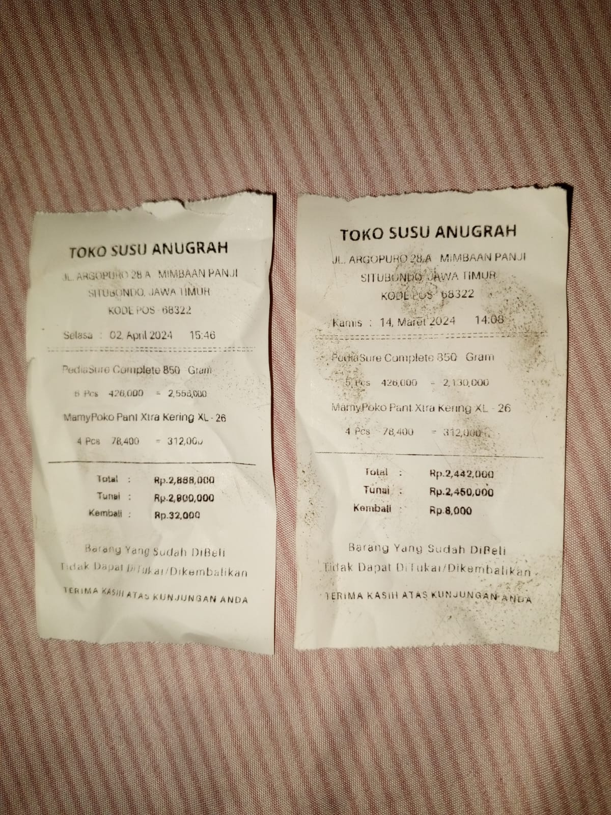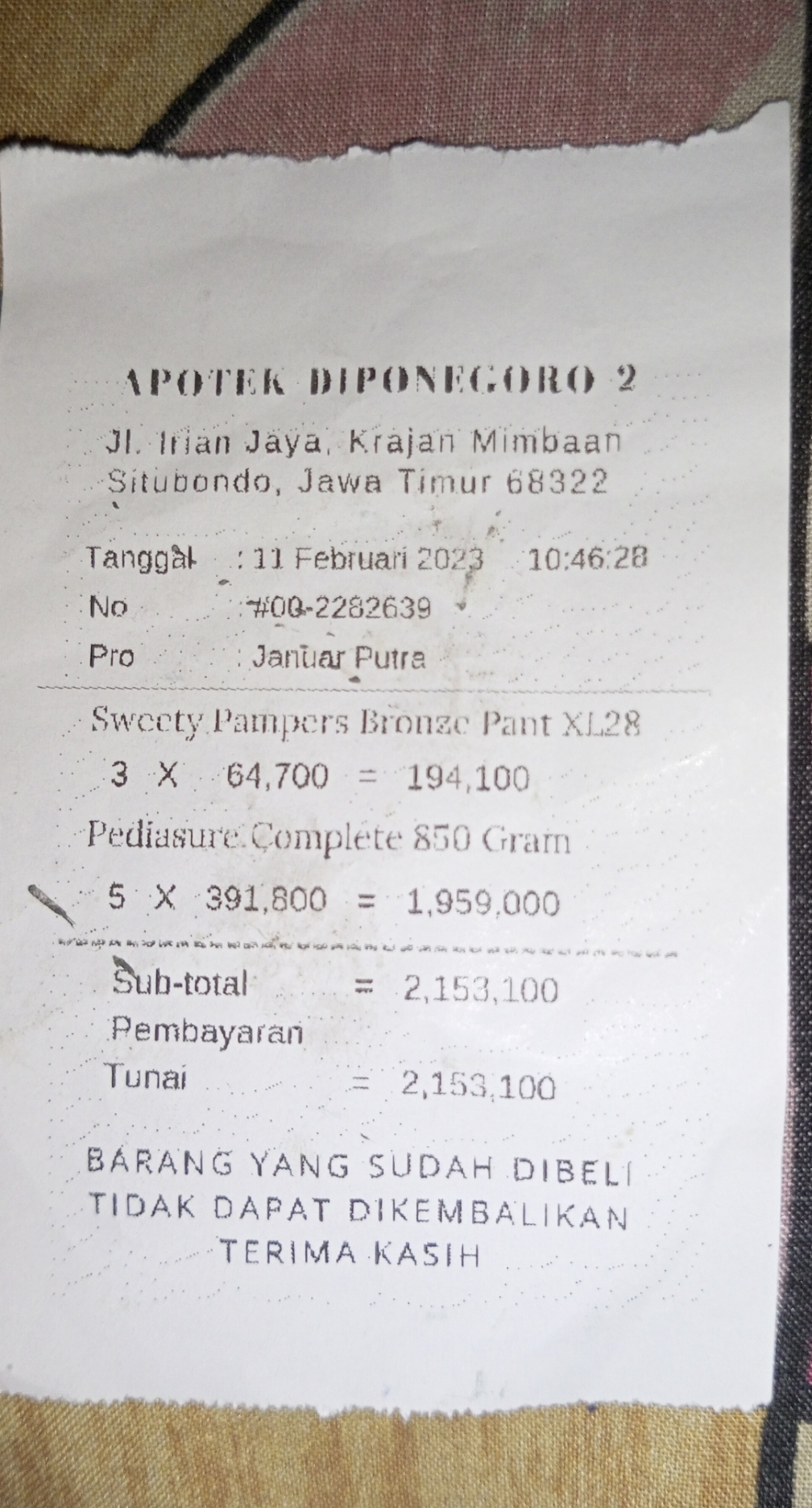 Dana digunakan untuk biaya penggantian pembelian Susu Pediasure Completed 850 gram dan Pampers Sweety Bronze pada tanggal 11 Februari dan 16 Maret 2023 sebesar Rp4.698.000.2023-05-23 16:22:42