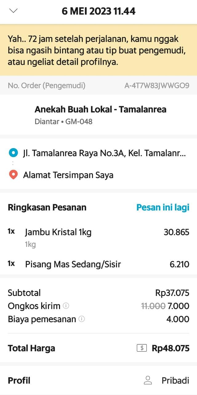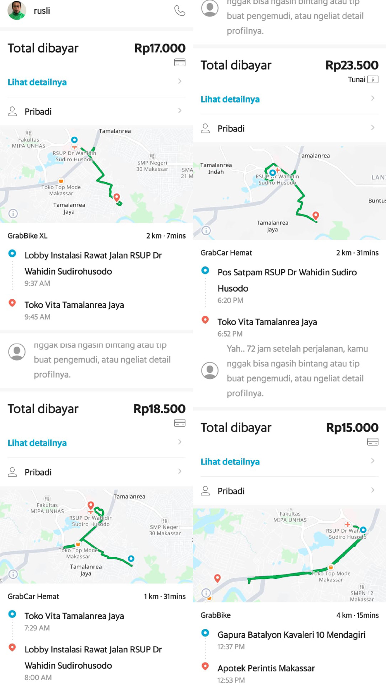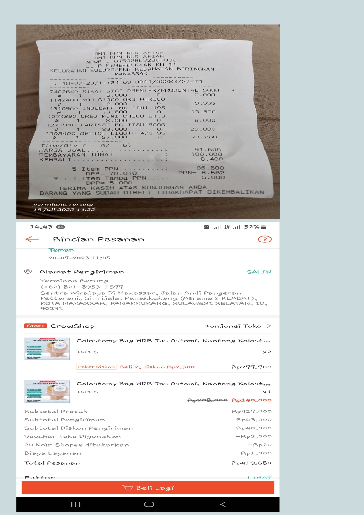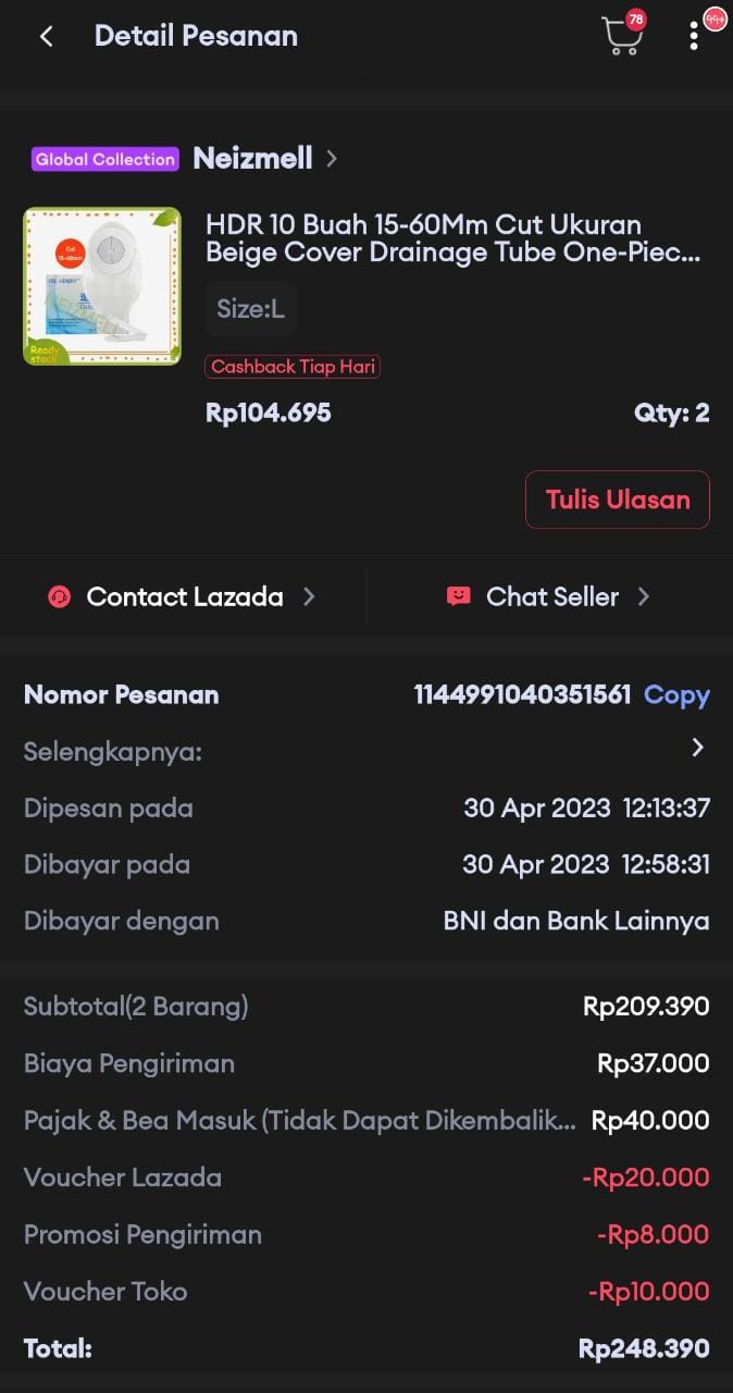 Bantuan dana dari TemanBaik sudah digunakan dengan baik untuk kantong kolostomi, susu, tisu, biaya transportasi online ke RS Wahidin Makassar, dan biaya makan pendamping selama perawatan kemoterapi.