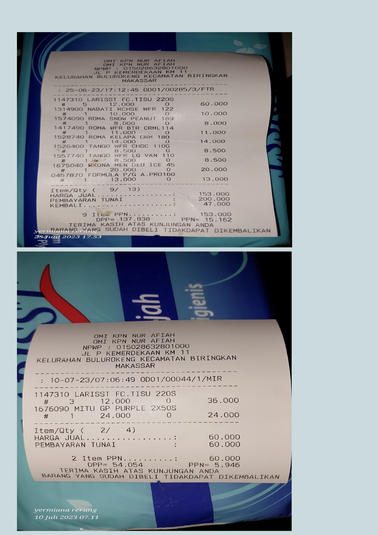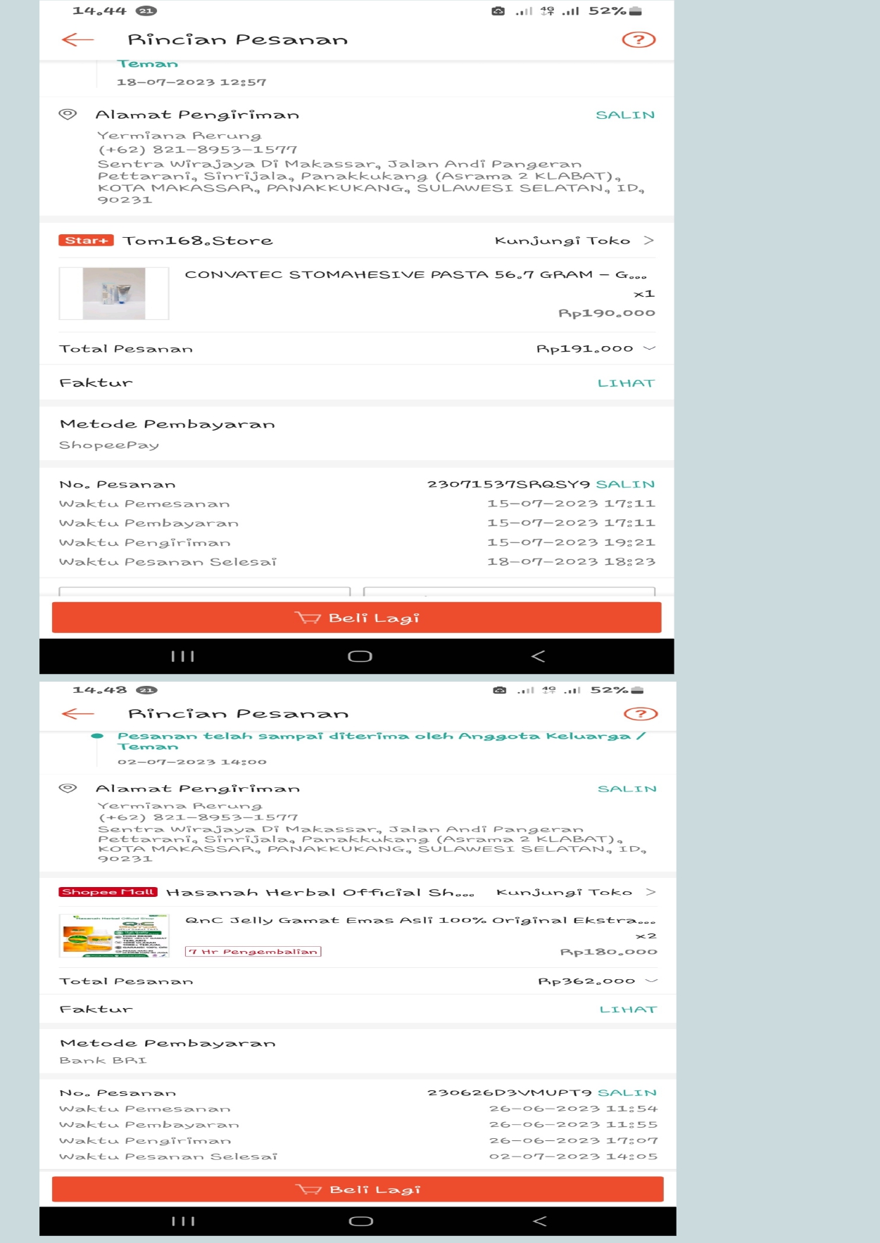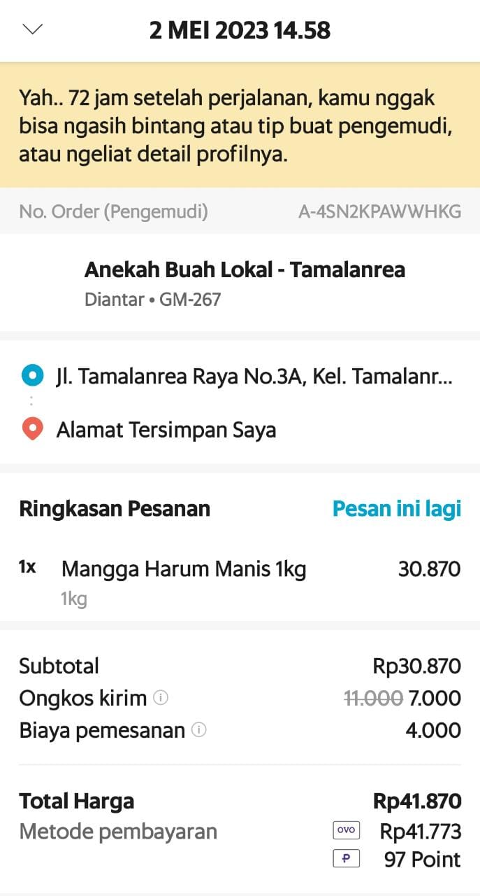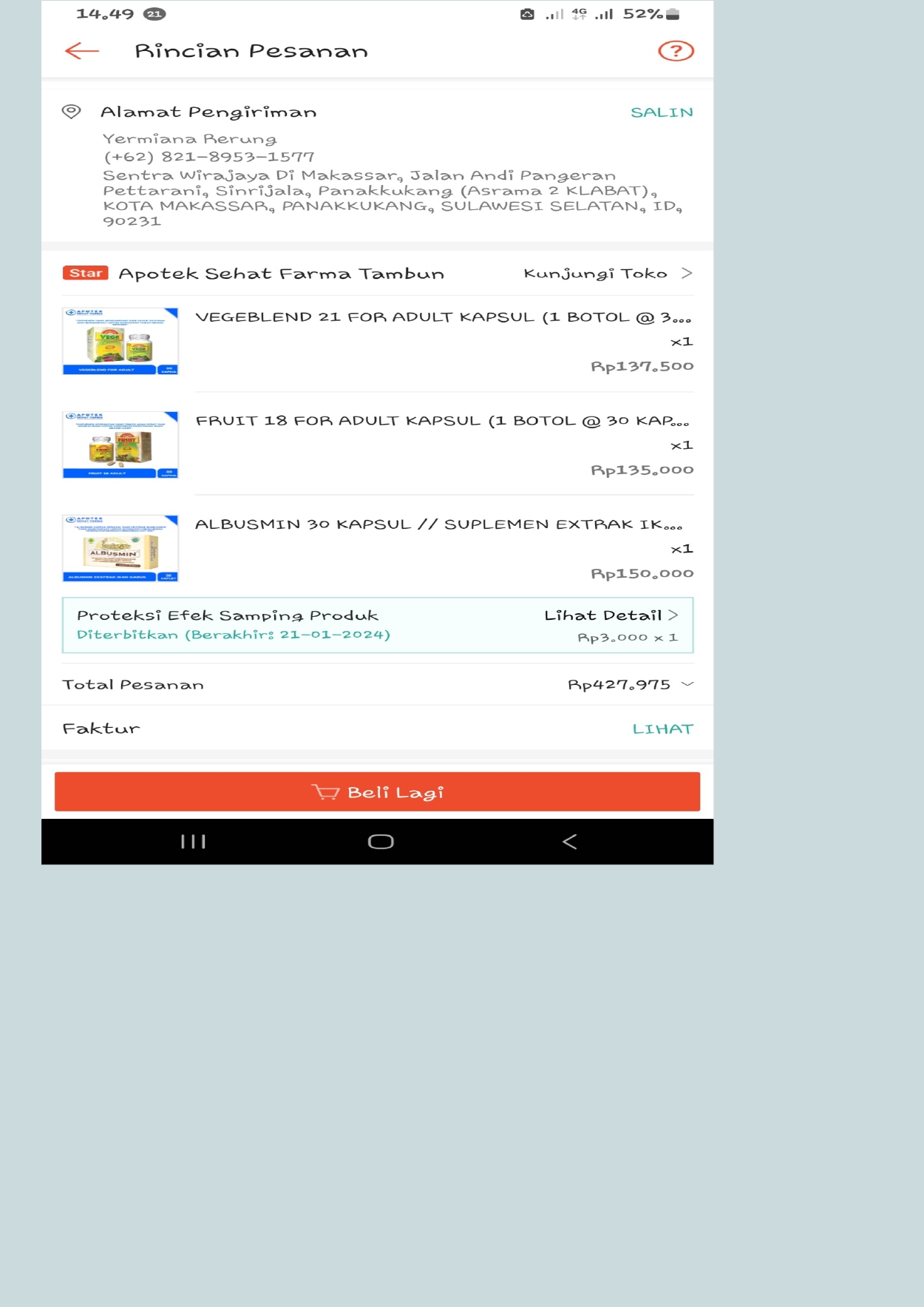 Bantuan dana dari TemanBaik sudah digunakan dengan baik untuk kantong kolostomi, susu, tisu, biaya transportasi online ke RS Wahidin Makassar, dan biaya makan pendamping selama perawatan kemoterapi.