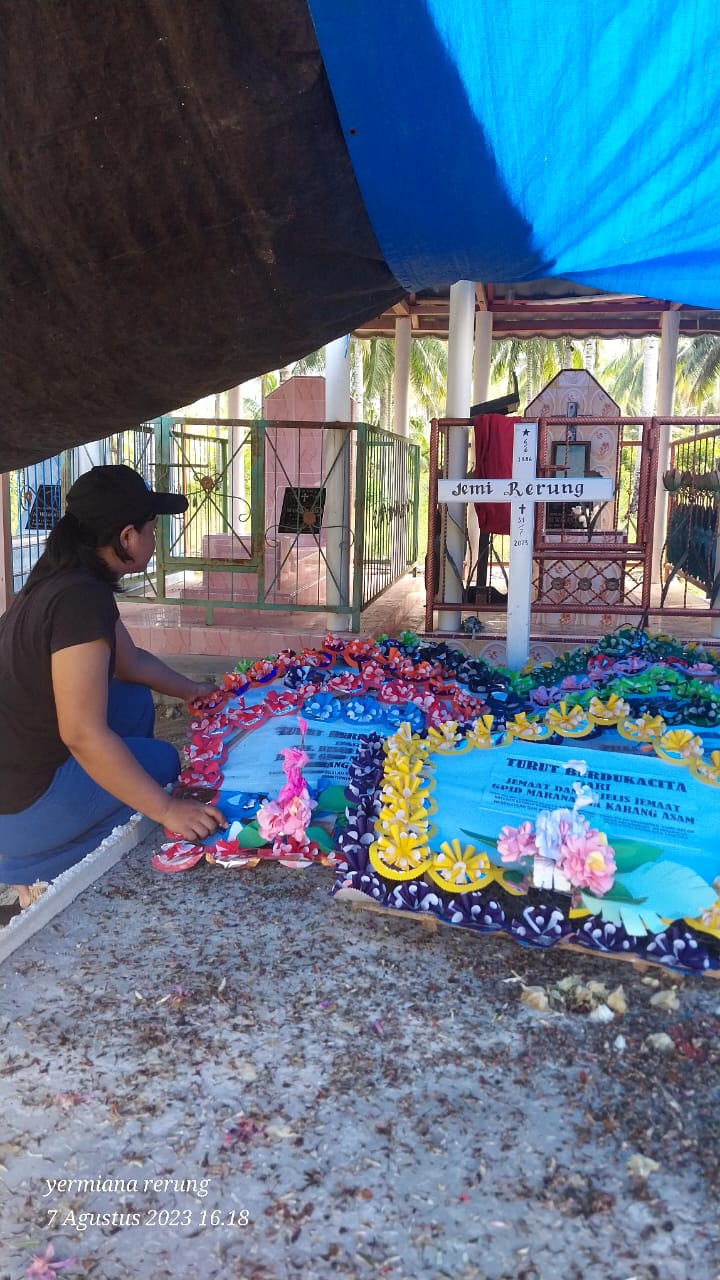 Jenazah suamiku dikebumikan di Desa Tanalanto, Kec. Torue, Kab. Parigi Moutong, Sulawesi Tengah pada tanggal 2 Agustus 2023 pukul 14.00.