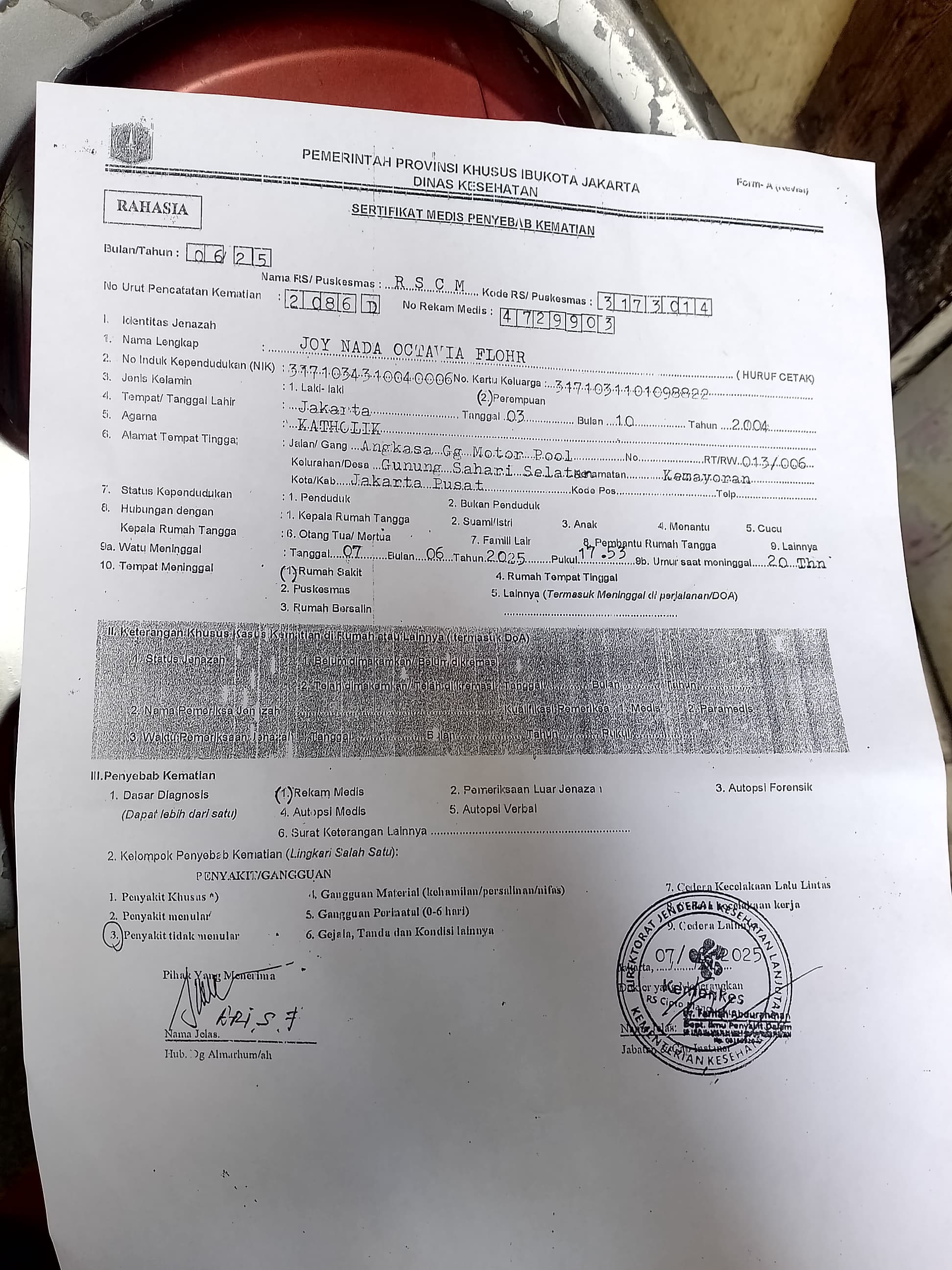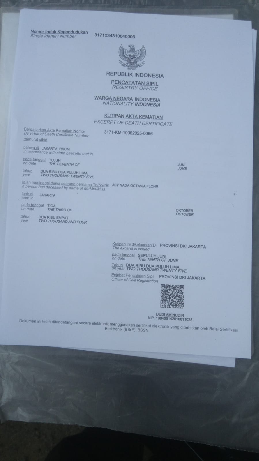 Kami sekeluarga sedang dalam suasana duka atas kepergian almarhumah Joynada Octavia Flohr. Saat ini, kami membutuhkan biaya untuk pelaksanaan tahlilan dari hari pertama hingga hari ketujuh. Jika ada rezeki lebih, kami juga berencana mengadakan tahlilan 40 harinya. Terima kasih #TemanBaik yang telah membantu Joynada semasa hidup hingga kini.