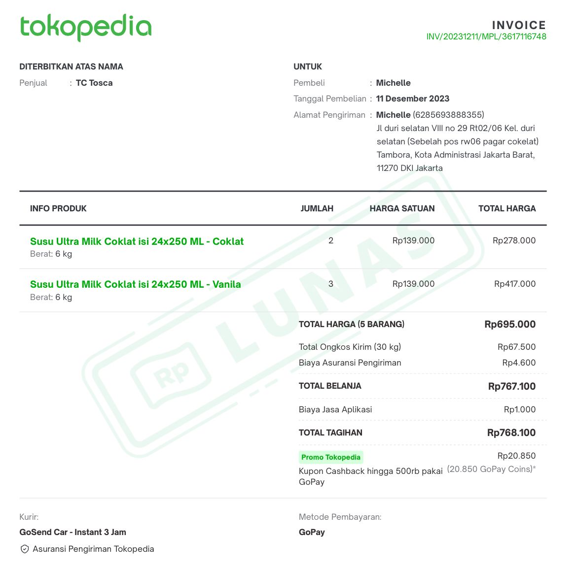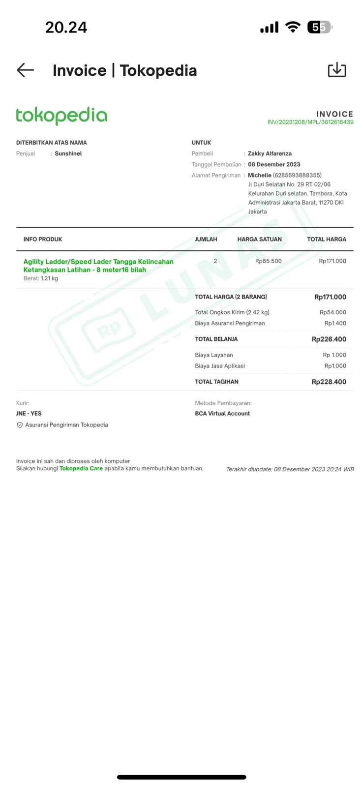 Dana digunakan untuk 1. Cone 2 set Rp120.000 2. Tangga ketangkasan 2 set Rp178.000 3. Mainan big cone ring 2 pcs Rp150.000 4. Bola basket 2 pcs Rp430.000 5. Sepak bola 2 pcs Rp429.000 6. Bola besar 2 pcs Rp398.000 7. Susu UHT 250 ml 10 dus Rp1.235.000 8. Guling gym yoga 2 pcs Rp290.000 9. Biskuit 10 dus Rp990.000 10. Sepatu AFO 4 pcs Rp980.000.2023-12-11 18:36:17