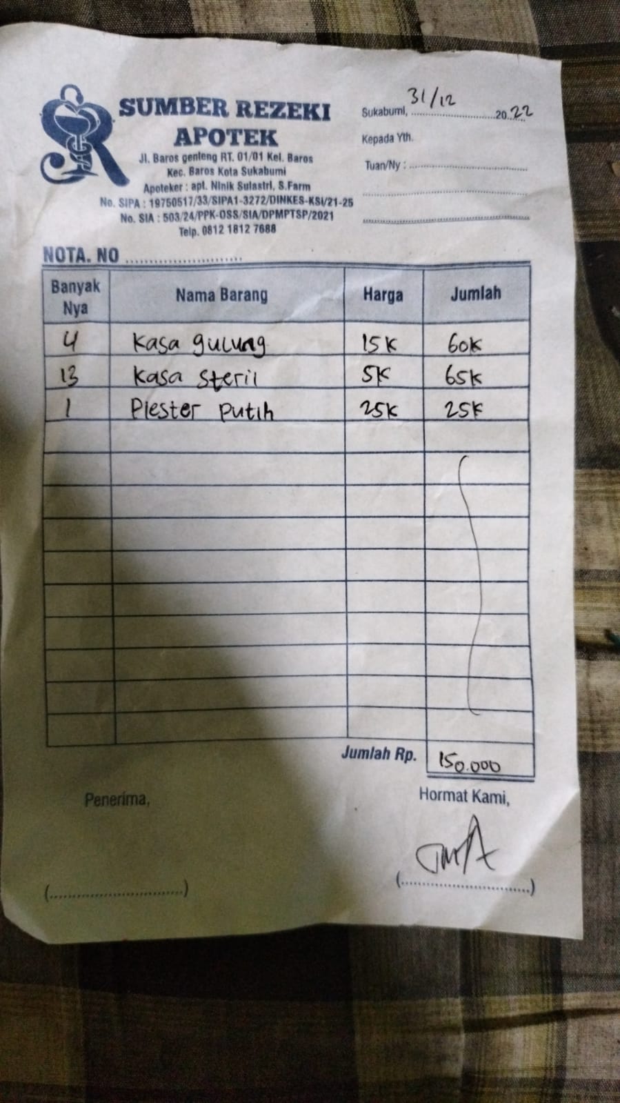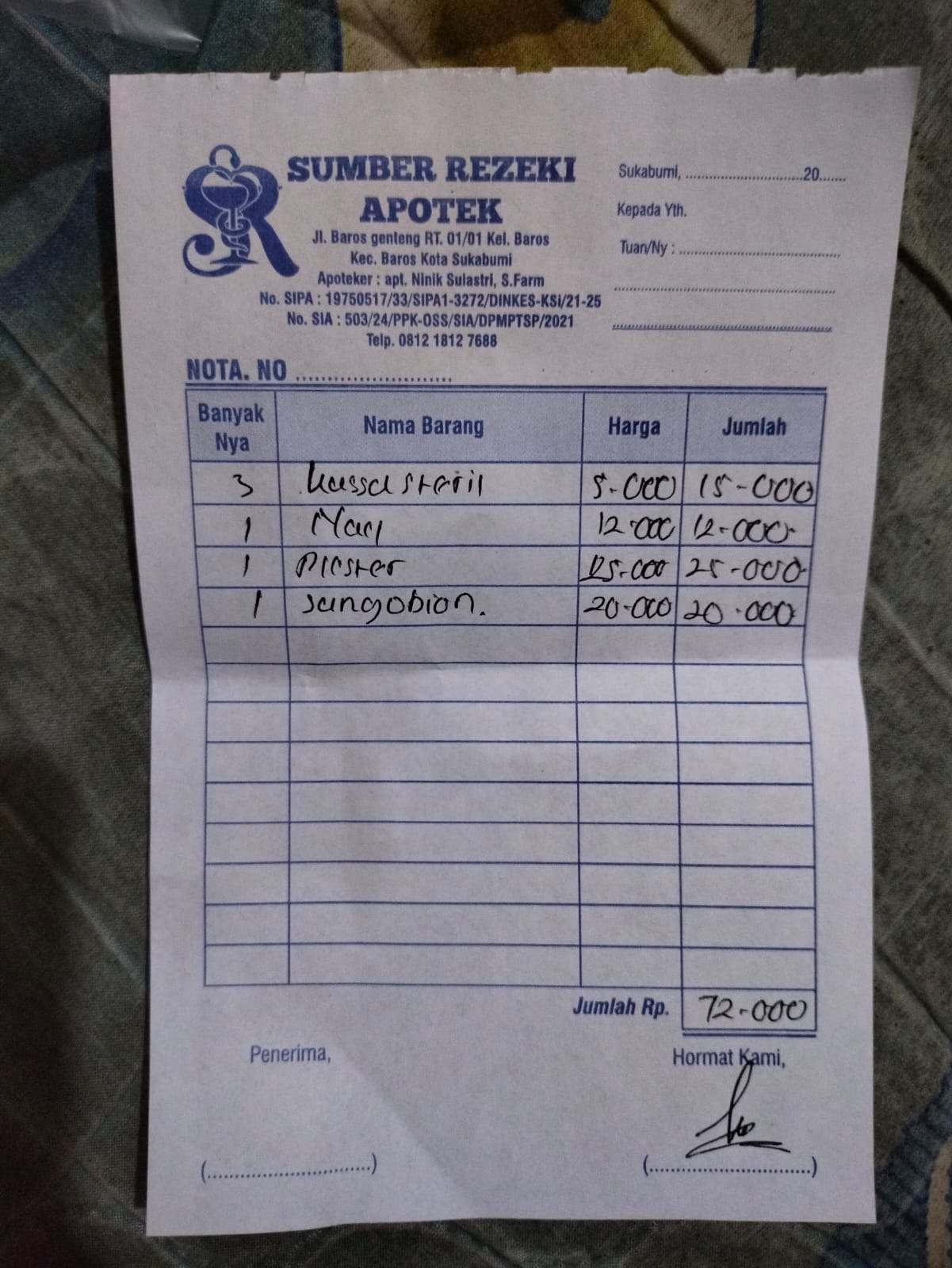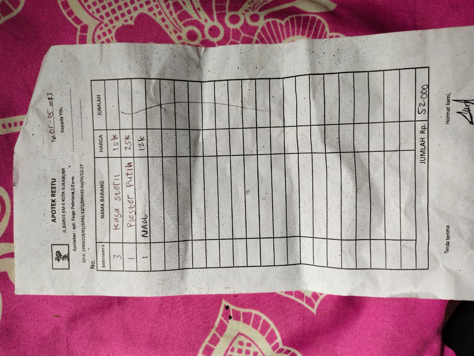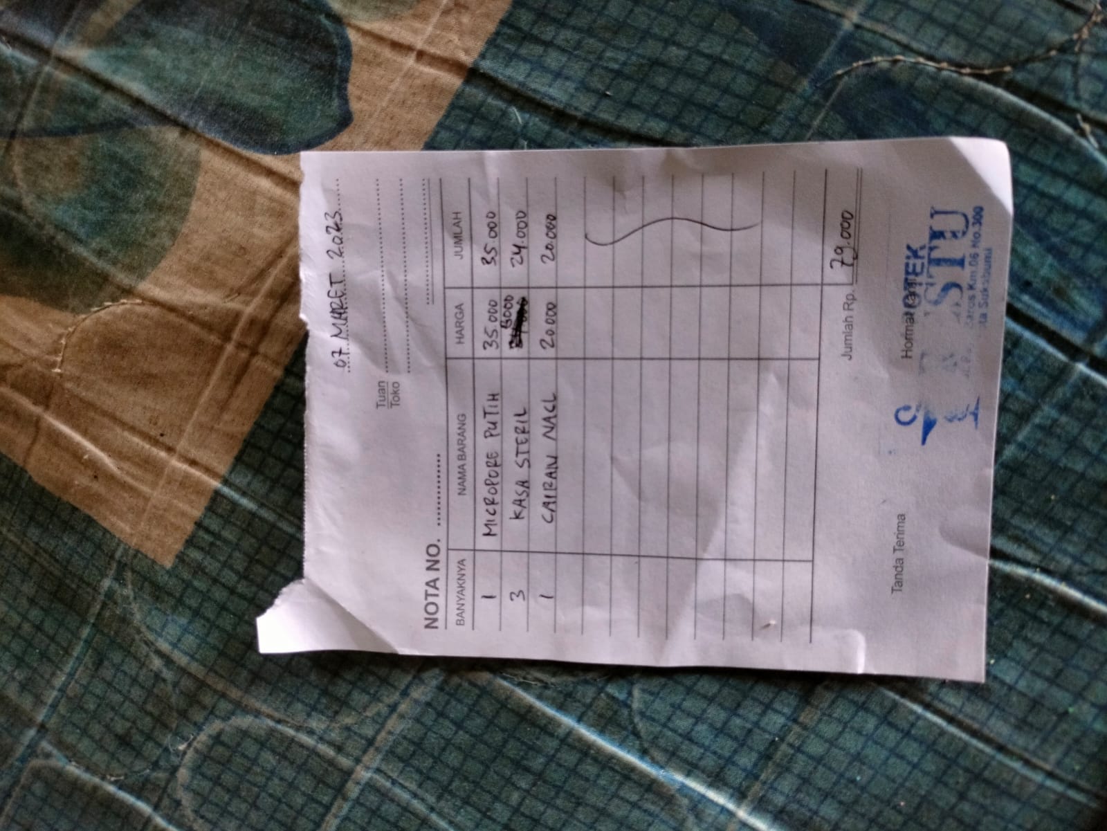 Dana dari TemanBaik sudah digunakan untuk membeli kassa steril, plester putih dan cairan NaCl.