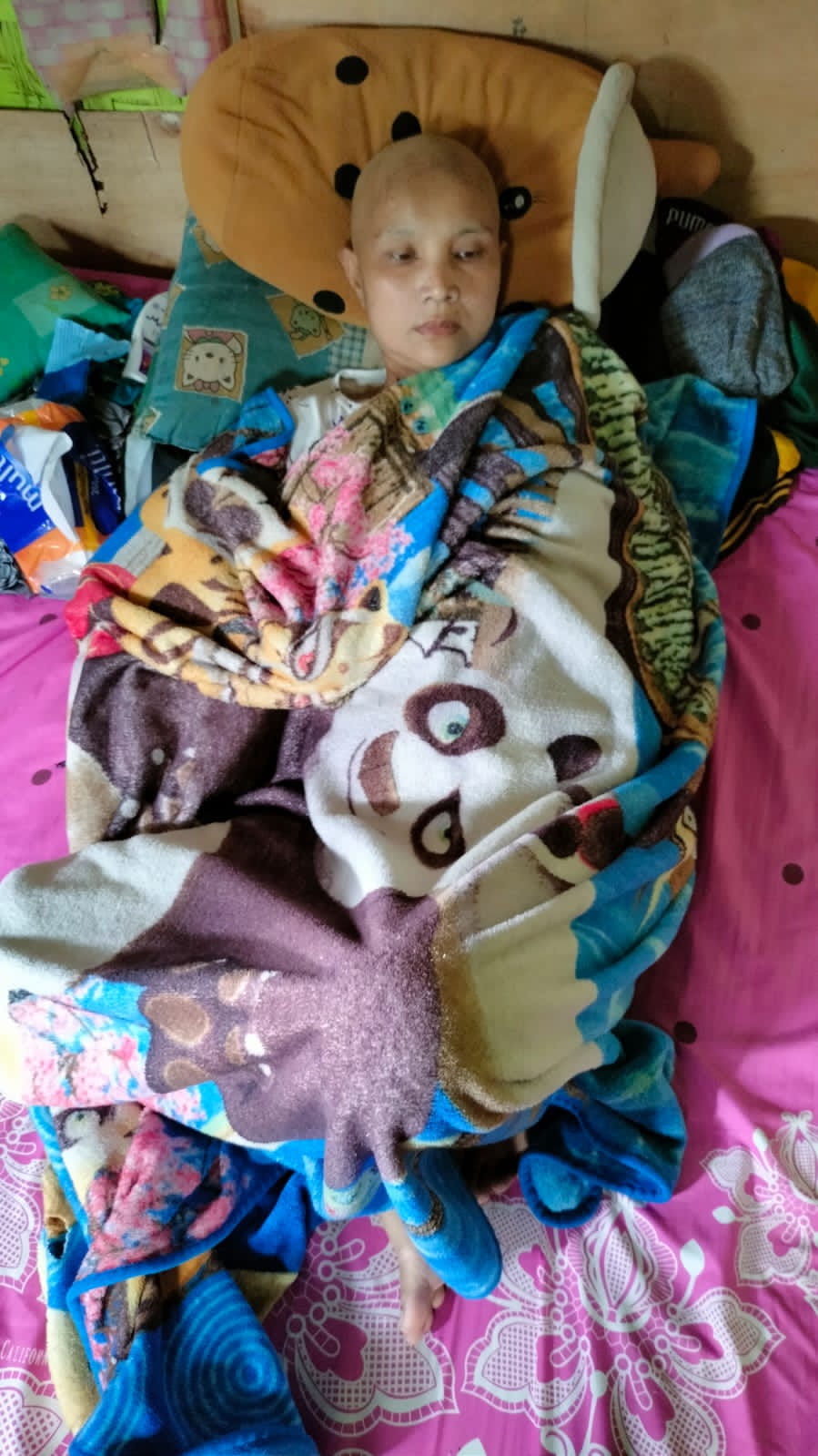 Kami mau mengabarkan kondisi Bu Yunengsih yang masih terbaring lemah di tempat tidur melawan kanker payudaranya.