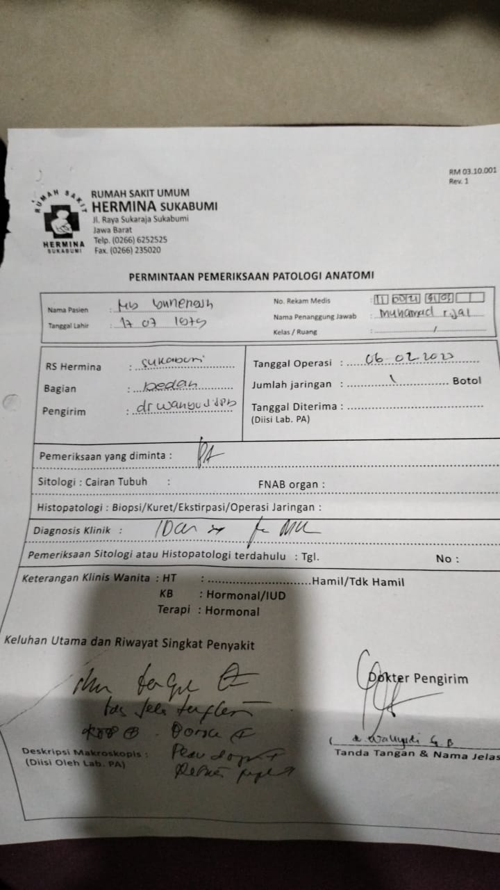 Perjalanan selanjutnya Bu Yunengsih kontrol ke RS Hermina Sukabumi dan membuat surat pengantar ke dokter bedah, kalaupun HBnya bagus akan dijadwalkan operasi pengangkatan payudara.