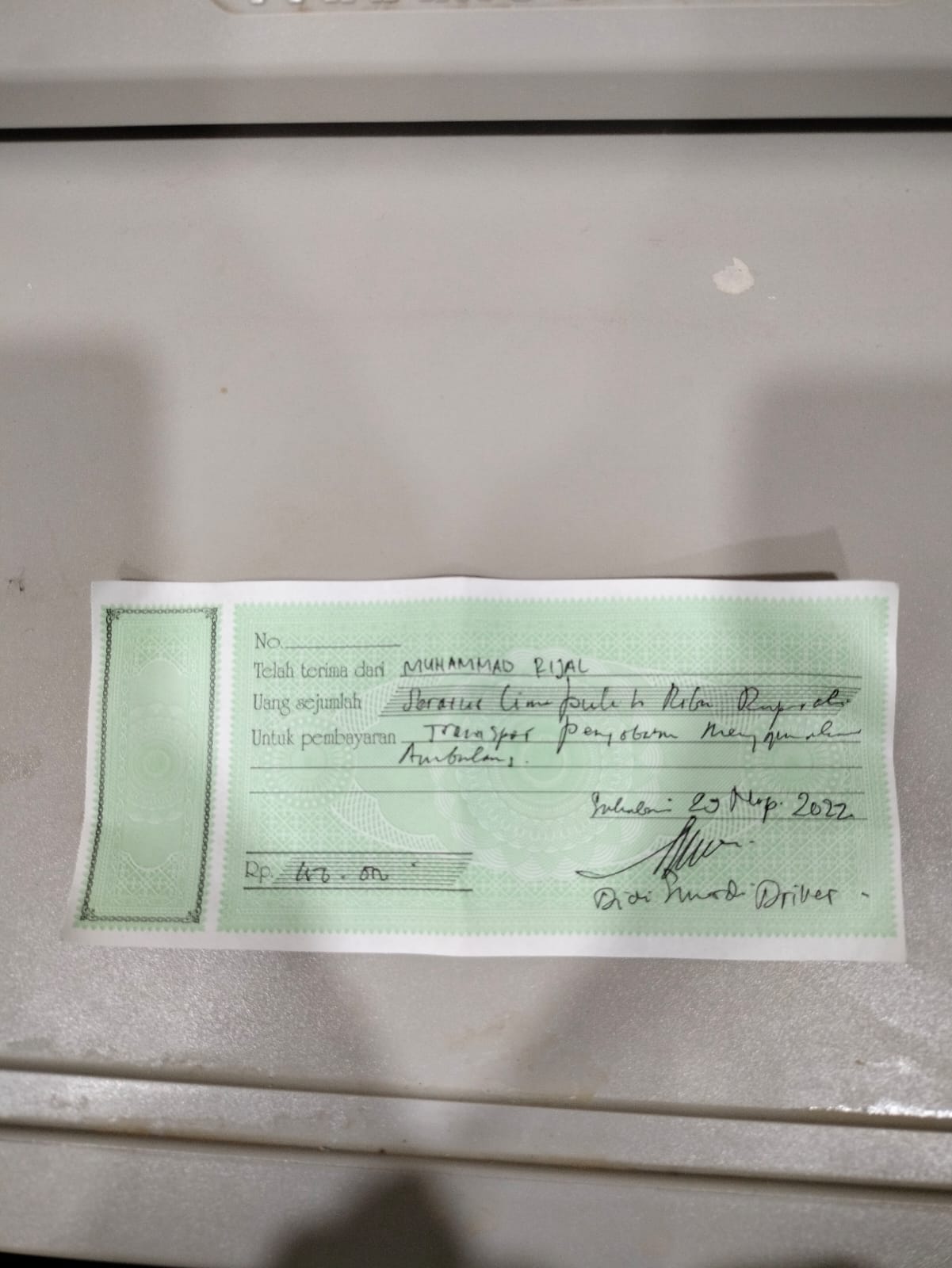 Dana digunakan untuk 1. Biaya transportasi PP ambulance ke RS Hermina Bekasi Rp300.000 2. Pembelian perban dan plaster Rp150.000 3. Pembelian buah-buahan Rp100.000.2022-11-22 17:16:14
