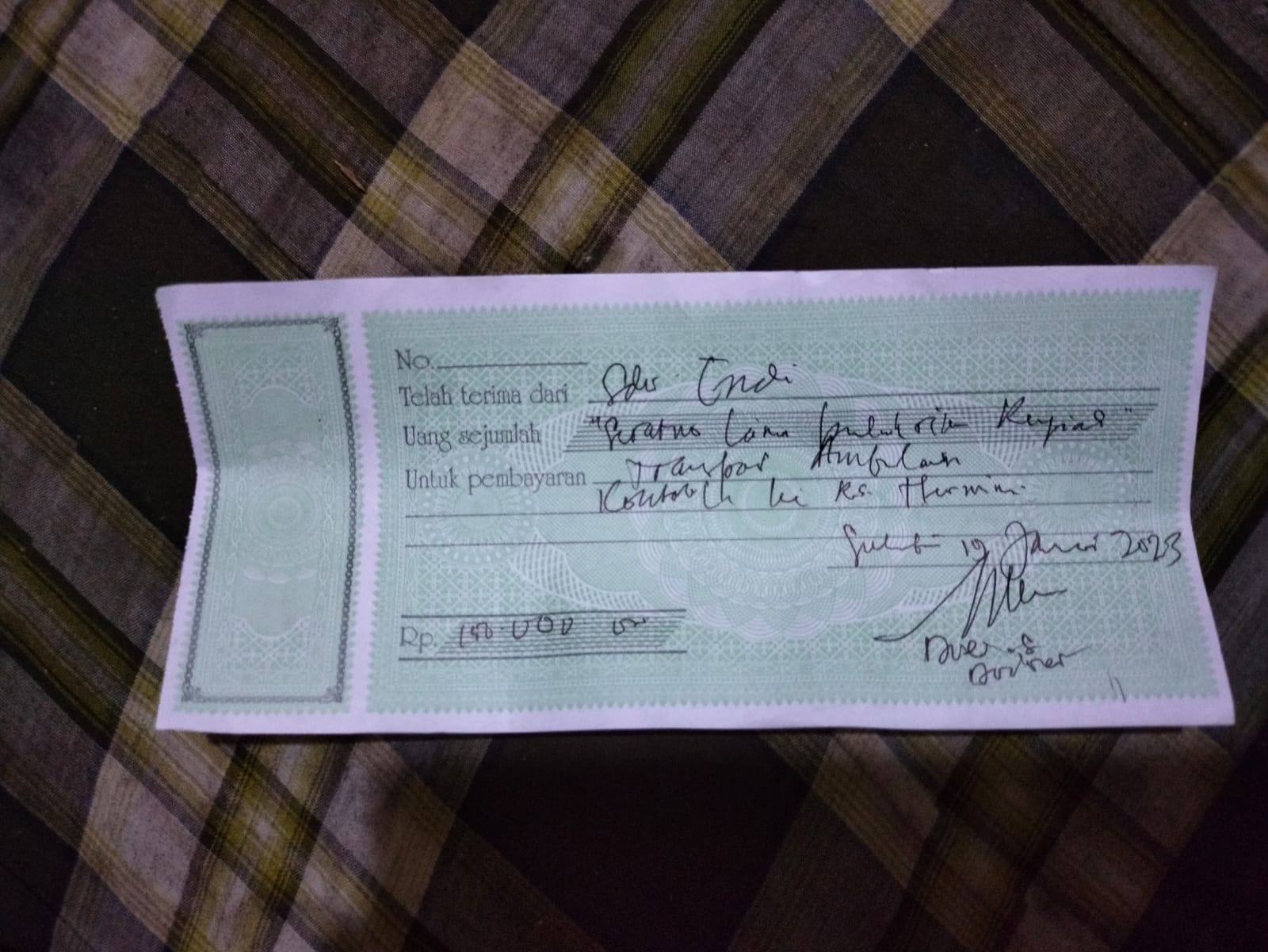 Donasi dari TemanBaik sudah digunakan dengan baik untuk membeli perlengkapan kesehatan ibu saya dan menyewa ambulans untuk ke rumah sakit.
